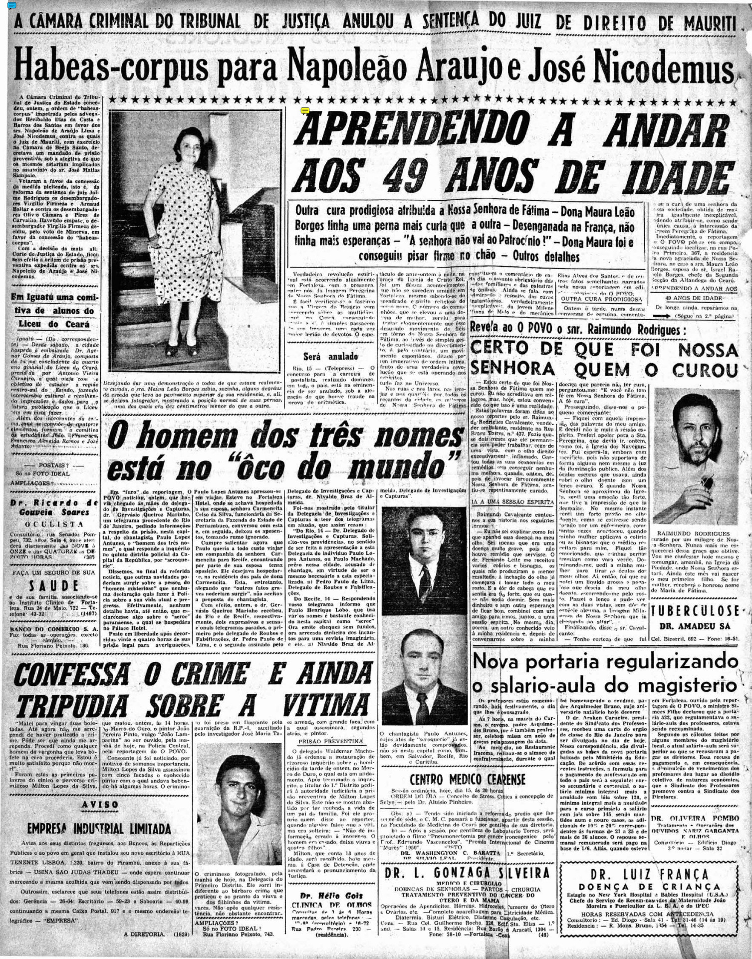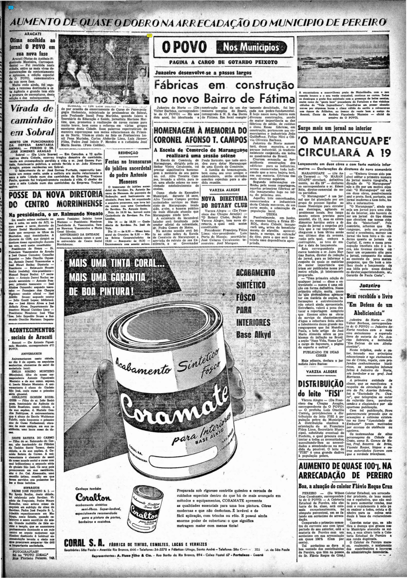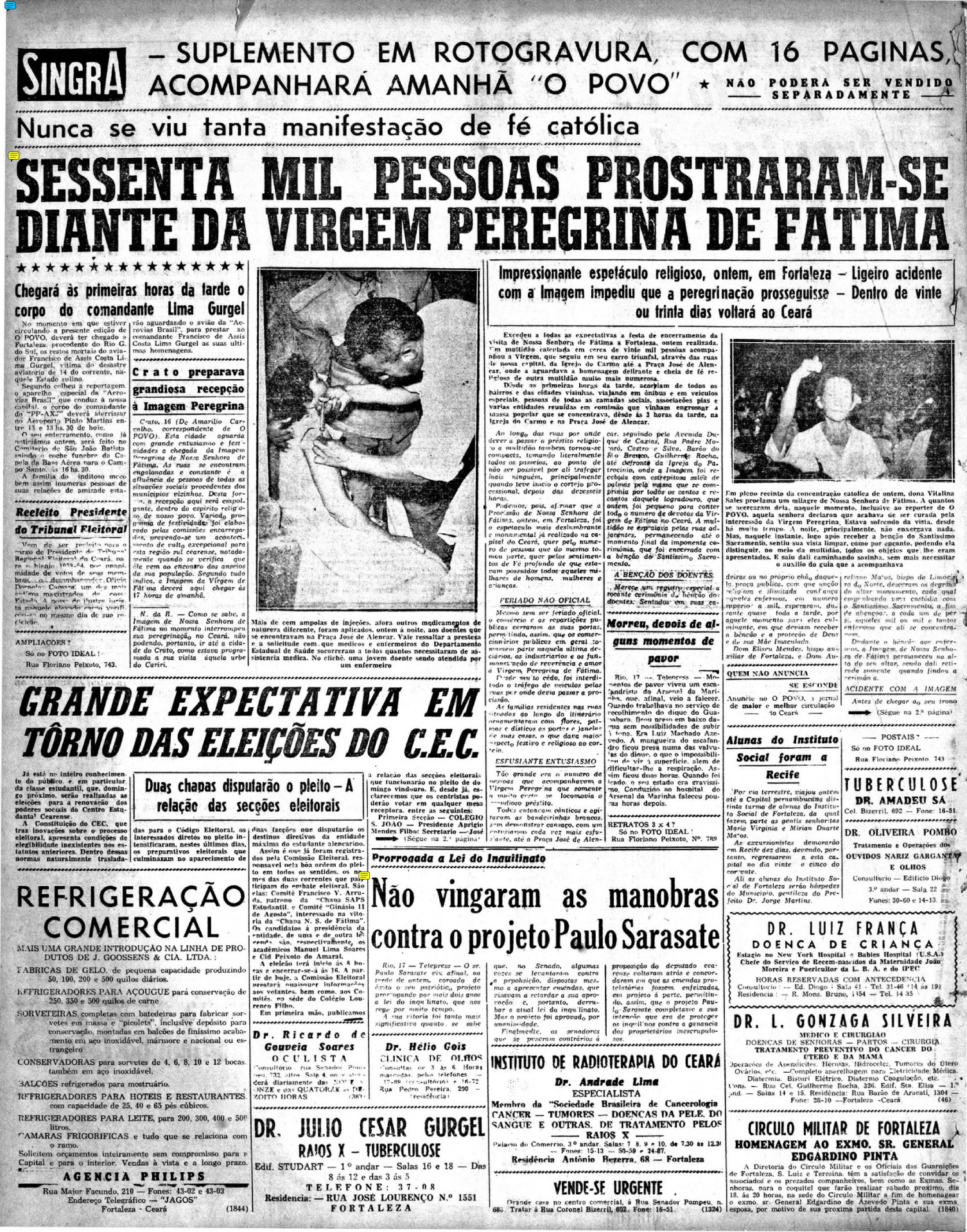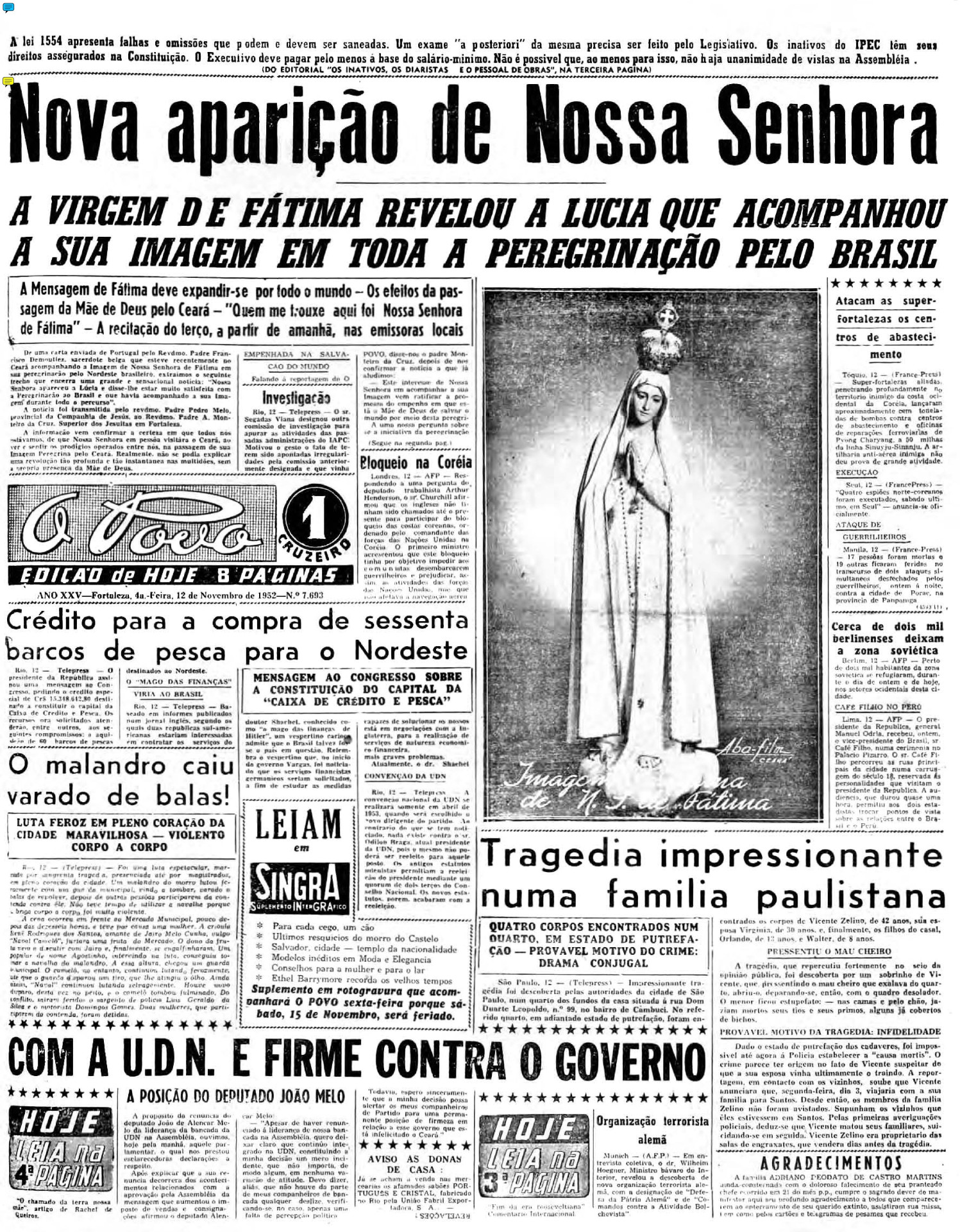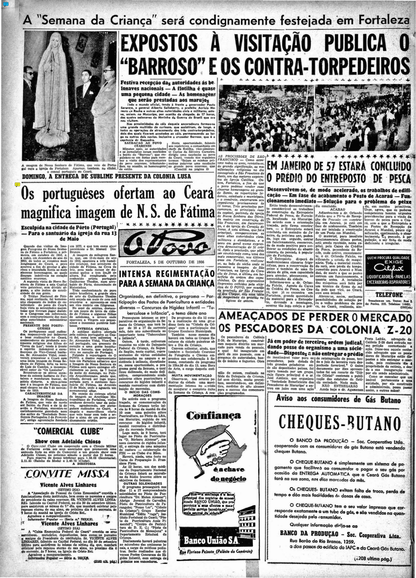 Em outra página, registrava-se que o comércio abriria apenas pela manhã e fecharia às 12h no dia da chegada, decisão tomada e divulgada pelo Diário Oficial do Município. A imagem esteve em terras alencarinas de 9 a 16 de outubro de 1952 e reuniu 60 mil pessoas para saudar a Virgem.