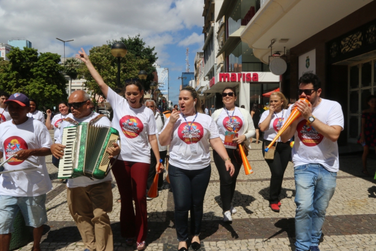 Acompanhados da banda Não Tô Nem Vendo, um grupo de gestores, associados, empresários e a diretoria da Câmara de Dirigentes Lojistas (CDL) realizaram, na manhã desta quarta-feira, 26, uma passeata para promover a nova campanha do órgão. A promoção Centro Premiado acontece entre 3 e 13 de julho e sorteará uma casa mobiliada com dois caminhões de prêmios (eletrodomésticos, eletroeletrônicos e móveis).