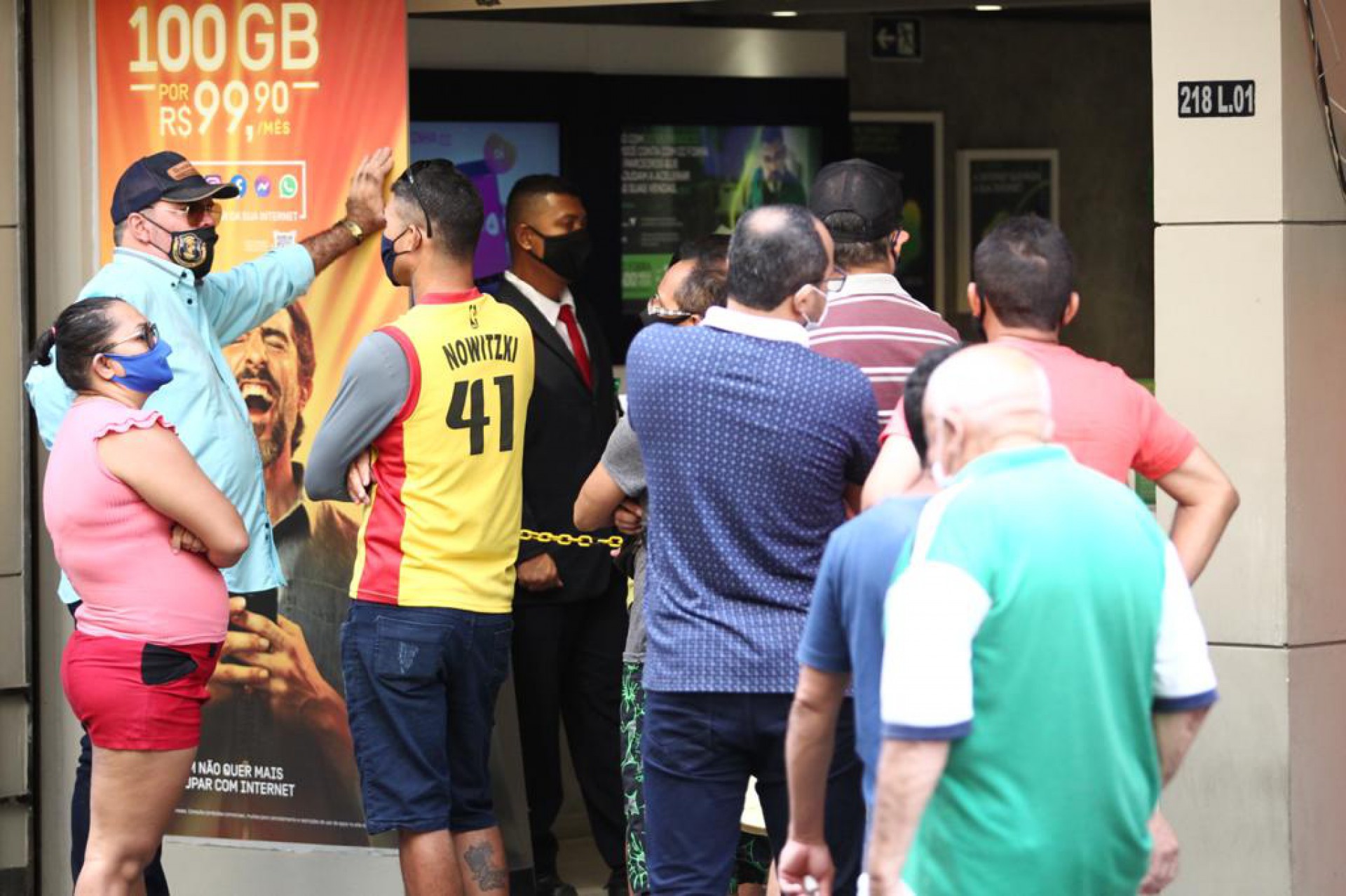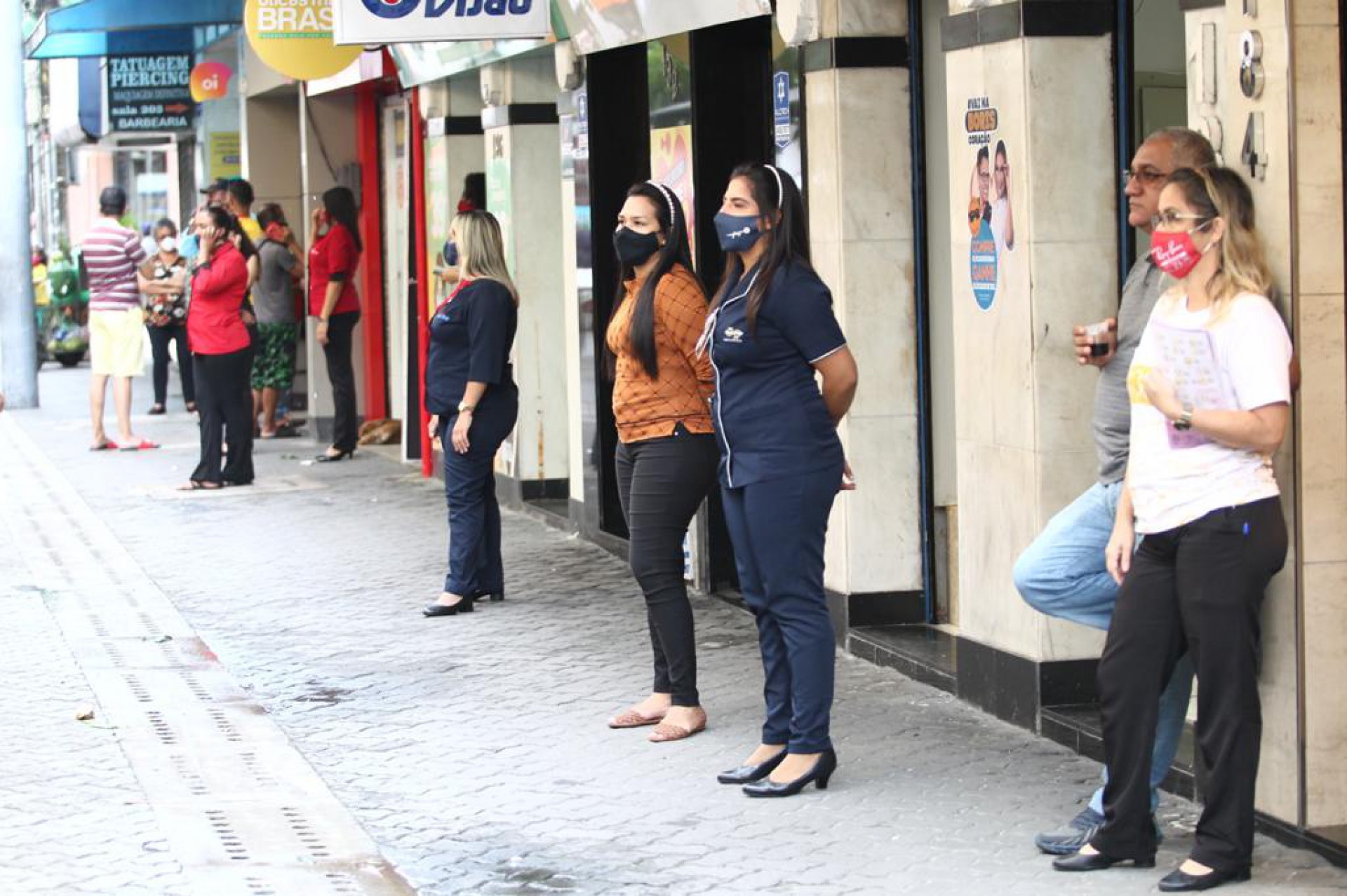 Com a limitação de 25% exigida pelo Decreto Estadual, algumas lojas registraram filas e aglomerações de clientes. Além do desrespeito ao distanciamento social mínimo de 2 metros, o uso de máscara era respeitado apenas por parte das pessoas. Alguns faziam uso do equipamento de proteção de forma inadequada ou simplesmente não o usavam.
