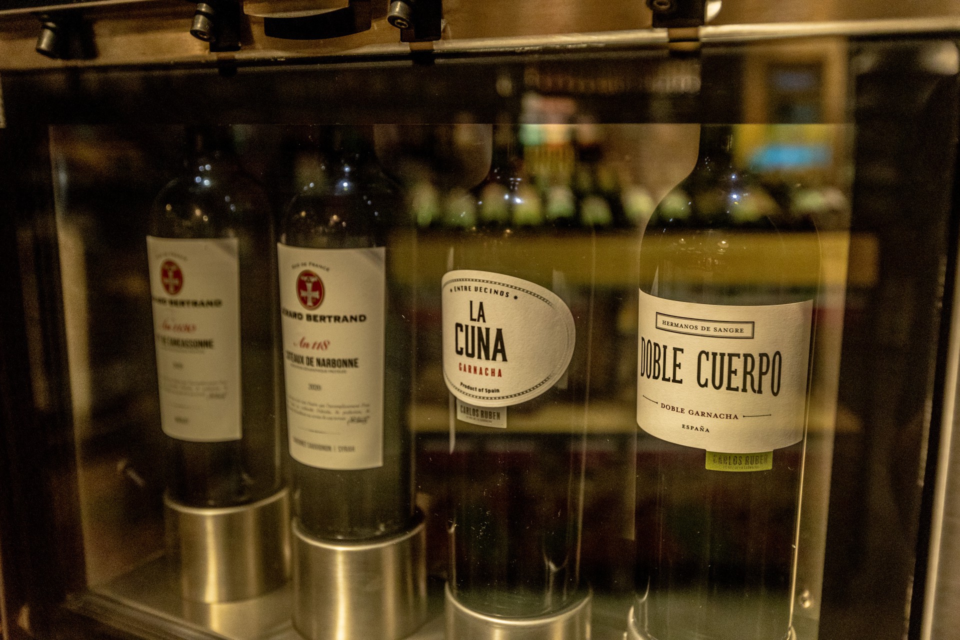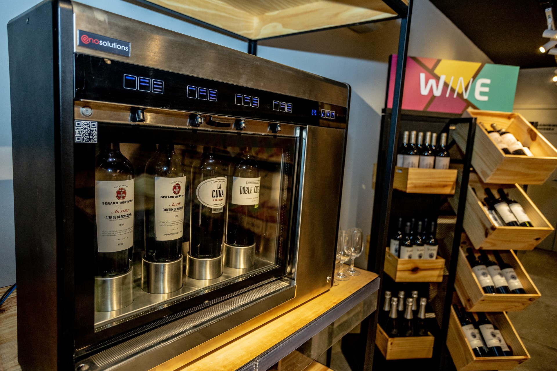 Além da Enomatic, máquina que permite aos sócios do Clube Wine degustar as seleções do mês, o espaço possui uma Scan & Show e Tela Touch, em que o cliente pode ler o rótulo e obter mais informações de cada.