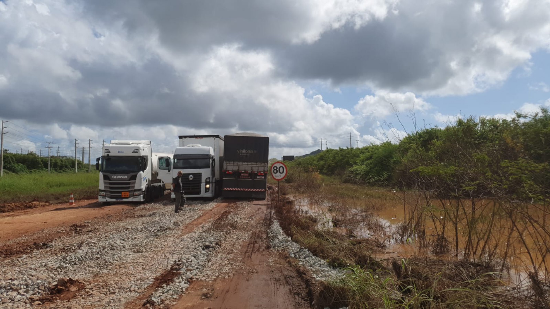 Veja vídeo do local onde os caminhões atolaram