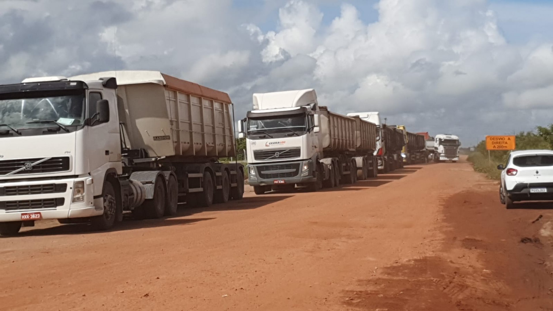 Em relato exclusivo ao O POVO, Rodolfo pontua ainda que o ocorrido na manhã de hoje gera uma fila quilométrica de caminhões e outros veículos que tinham como destino o Complexo do Pecém. "A via tá completamente obstruída, ninguém tem condições de chegar ou sair do Pecém até que os caminhões sejam desatolados, é a única via que permite a passagem de caminhões, o fluxo de cargas para o complexo tá totalmente parado.", revela.