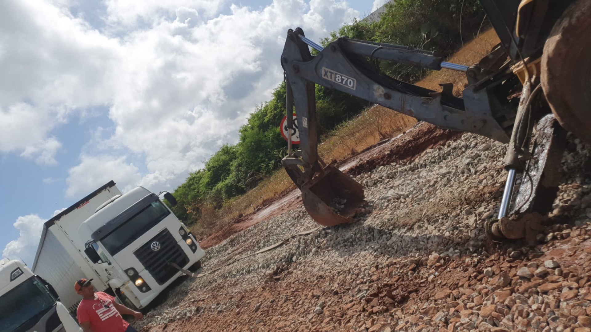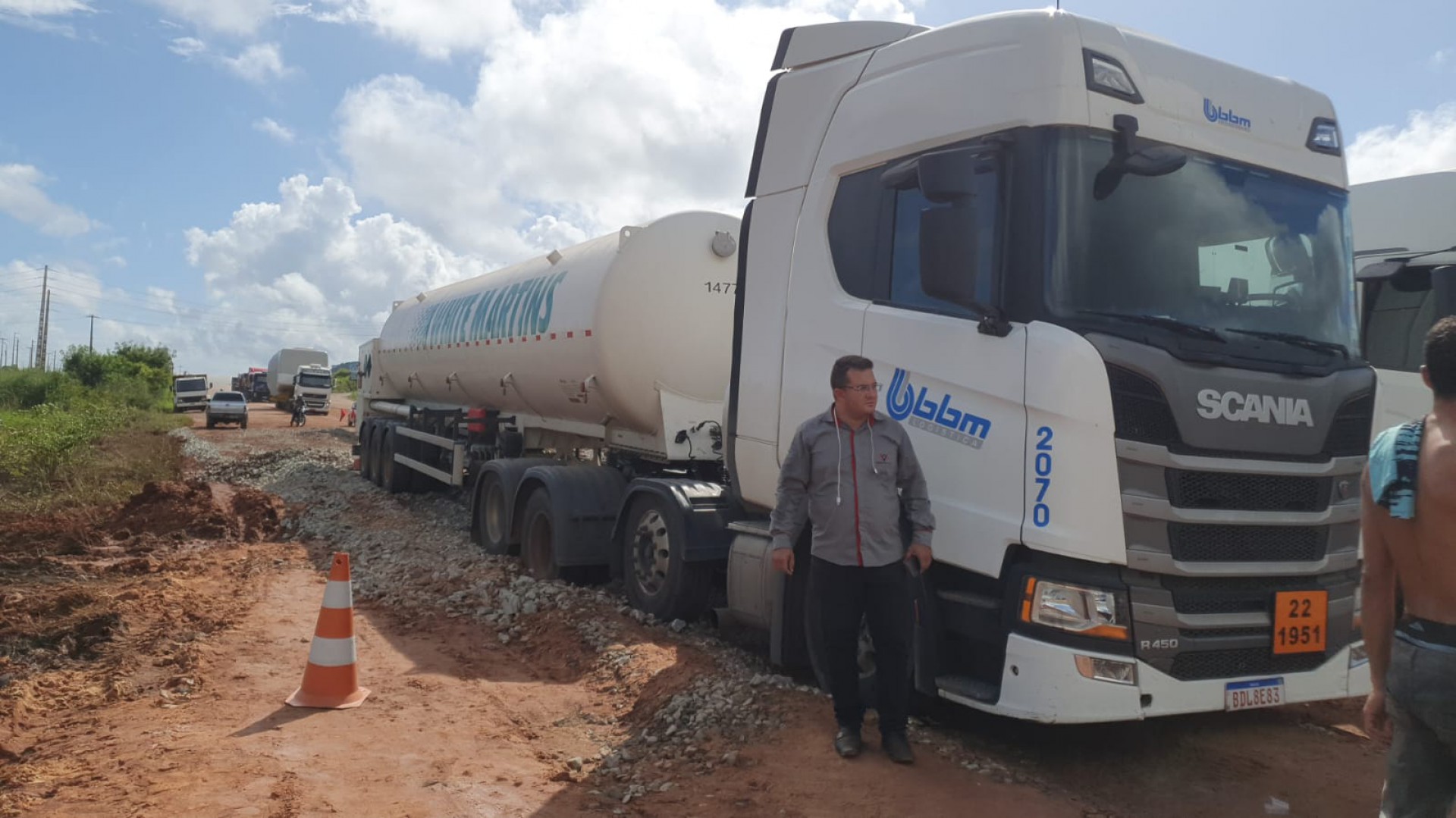 "São várias empresas com caminhões parados aqui, eu mesmo estou há horas no local, tá todo mundo no sol aqui, sem a menor previsão de quando isso vai ser resolvido. Estou tentando articular por meios privados maquinário para vir até o local e tentar desatolar os caminhões", comenta Rodolfo sobre a situação no local.