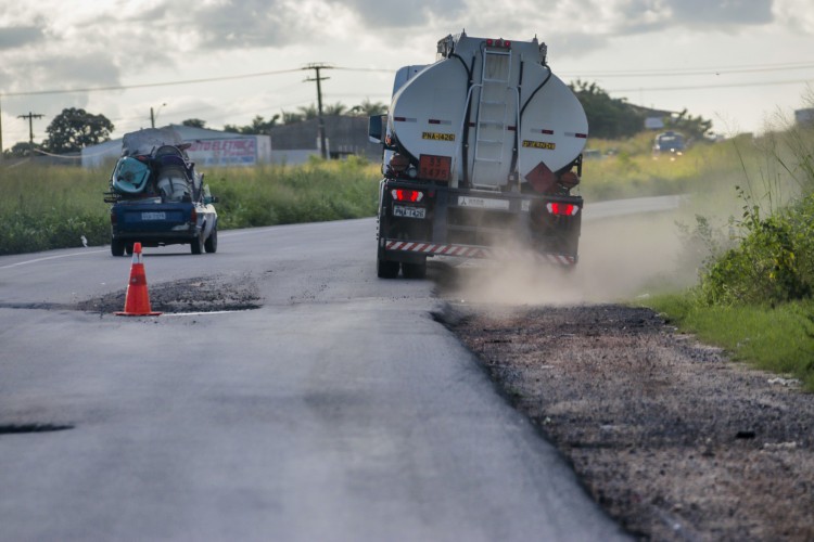 A rodovia é federal e há anos vem tendo as obras divididas entre a Superintendência de Obras Públicas (SOP), do Estado, e o Departamento Nacional de Infraestrutura de Transportes (Dnit), da União.