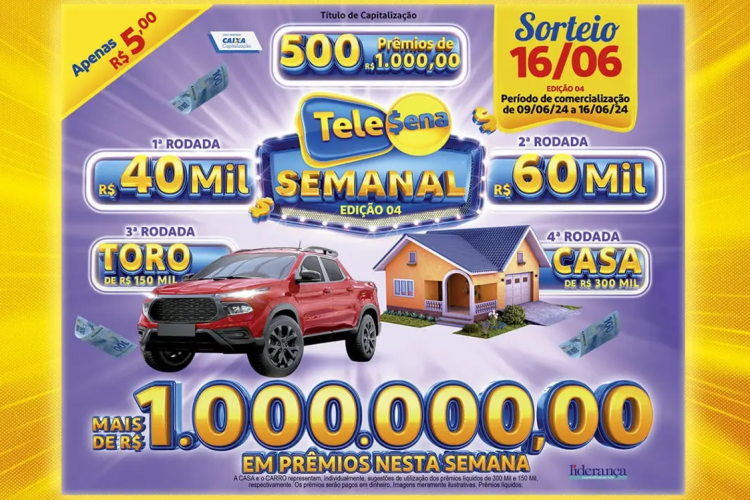 Tele Sena Semanal: 4º sorteio hoje (16/06/24); prêmio R$ 1 milhão