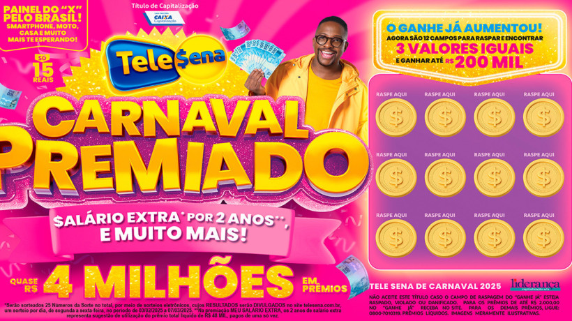 Resultado Tele Sena de Carnaval 2025 domingo (02/03/25): 4º sorteio