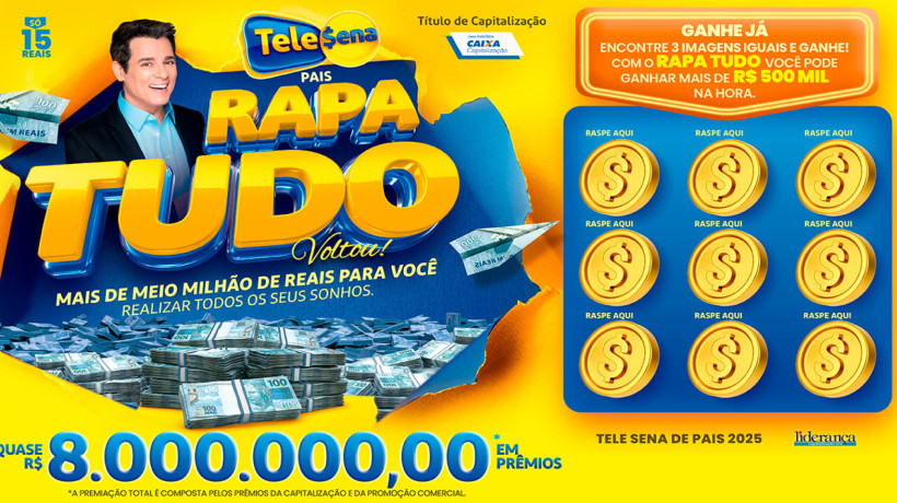 A Tele Sena de Pais 2025 divulgou o resultado do sorteio de hoje, domingo, 13 de julho de 2025 (13/07/25); são quase R$ 8 milhões em prêmios