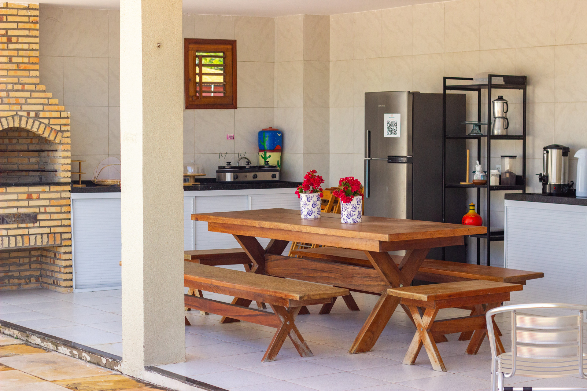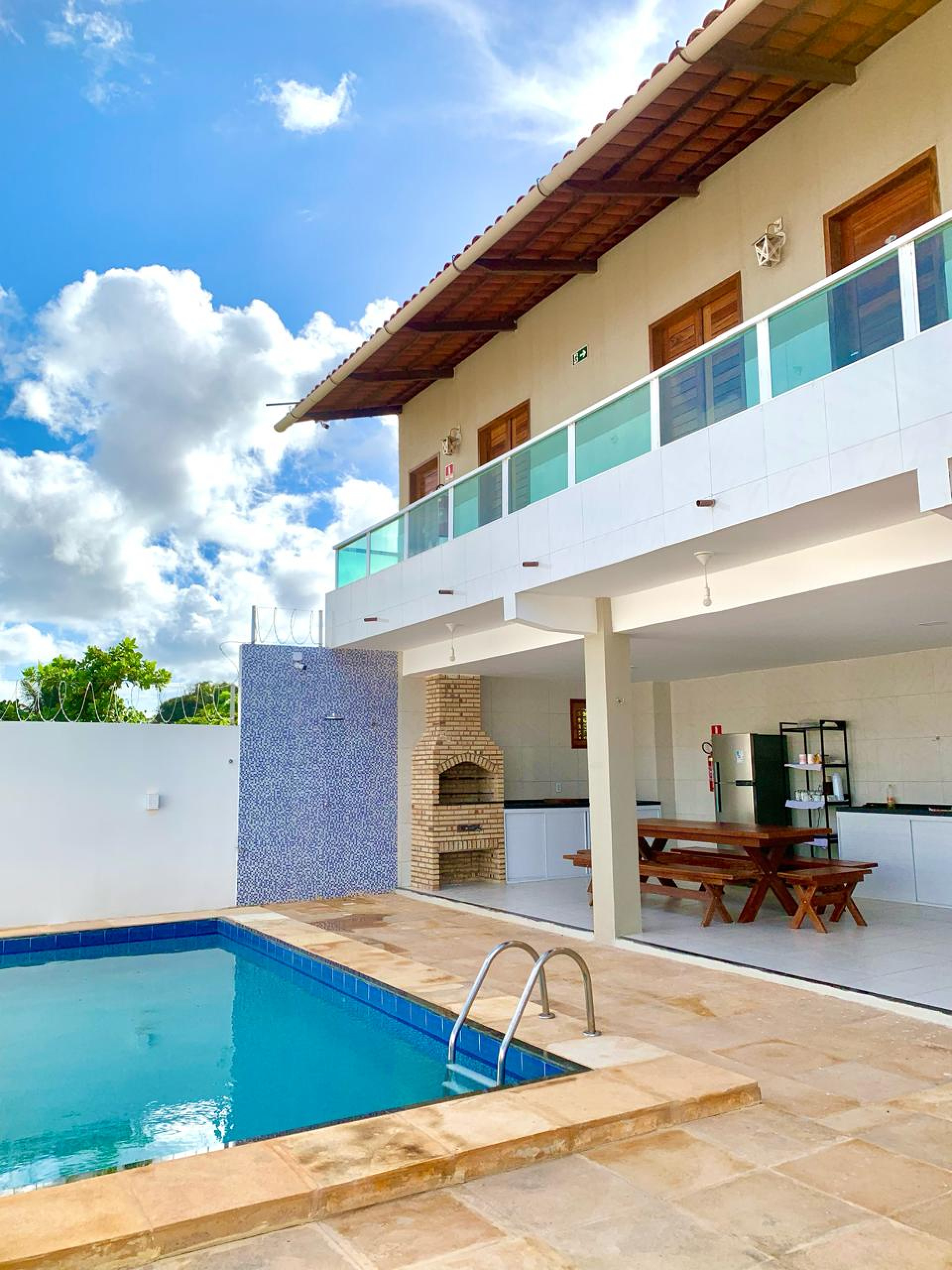 A pousada também apresenta uma piscina e um deck com cozinha compartilhada, equipada com geladeira, microondas, churrasqueira e utensílios de uso livre pelos hóspedes. A diária ainda não inclui café da manhã, mas o benefício poderá ser contratado como adicional a partir de agosto.