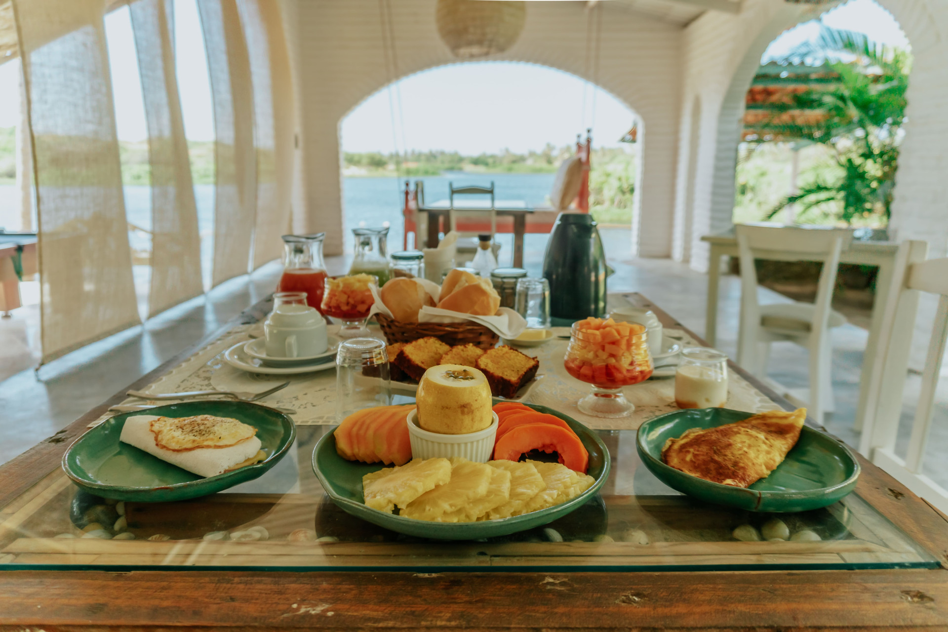 O café da manhã está incluso e é servido à beira da lagoa, com delícias artesanais, ingredientes frescos e orgânicos, variedades de chás do canteiro da hospedagem e pratos como Eggs Benedict e crepes franceses. Entre as comodidades, destacam-se a piscina com cascata, jacuzzi para 12 pessoas, rooftop panorâmico com vista para a lagoa e dunas, cozinha gourmet com horta orgânica e lounge com gazebos e áreas de descanso, além de estacionamento gratuito, caiaques e stand-up paddle.