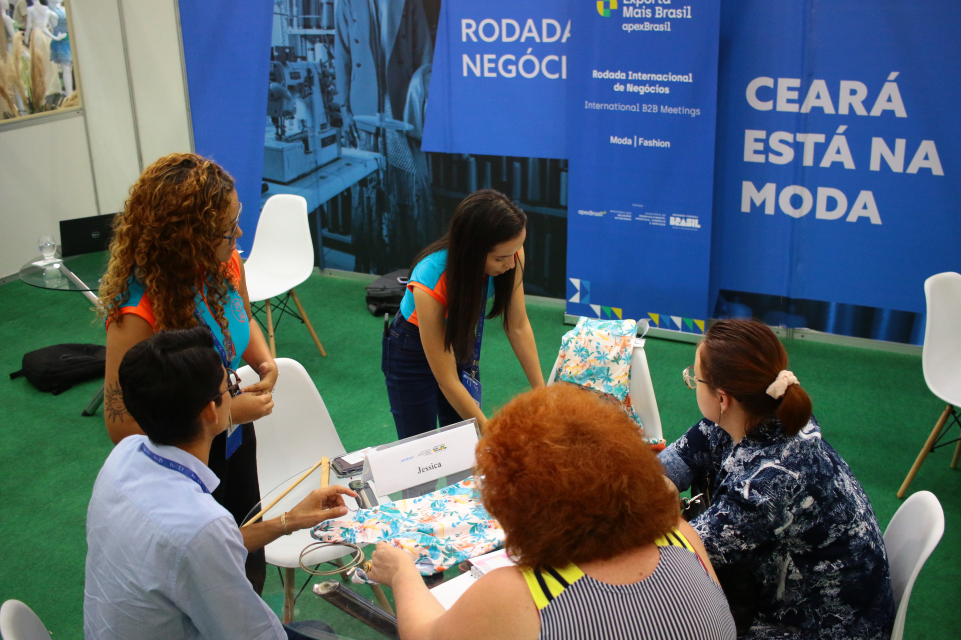 “Eles vêm para comprar histórias”. Assim Pablo Lira, assessor da presidência da Agência Brasileira de Promoção de Exportações e Investimentos (Apex Brasil), define a atuação das empresas internacionais que vêm ao Brasil para fazer negócios. No Estado, elas foram convidadas para se conectar com as marcas cearenses que expõem seus produtos nos estandes do Ceará Está na Moda (CEM), que ocorre até essa quinta-feira, 25, no Centro de Eventos do Ceará. Durante a Rodada de Negócios, setor específico do evento que facilita esse contato, a Apex trouxe compradores dos Emirados Árabes Unidos, Espanha, Rússia, Filipinas e África do Sul para ver de perto as belezas da moda cearense.