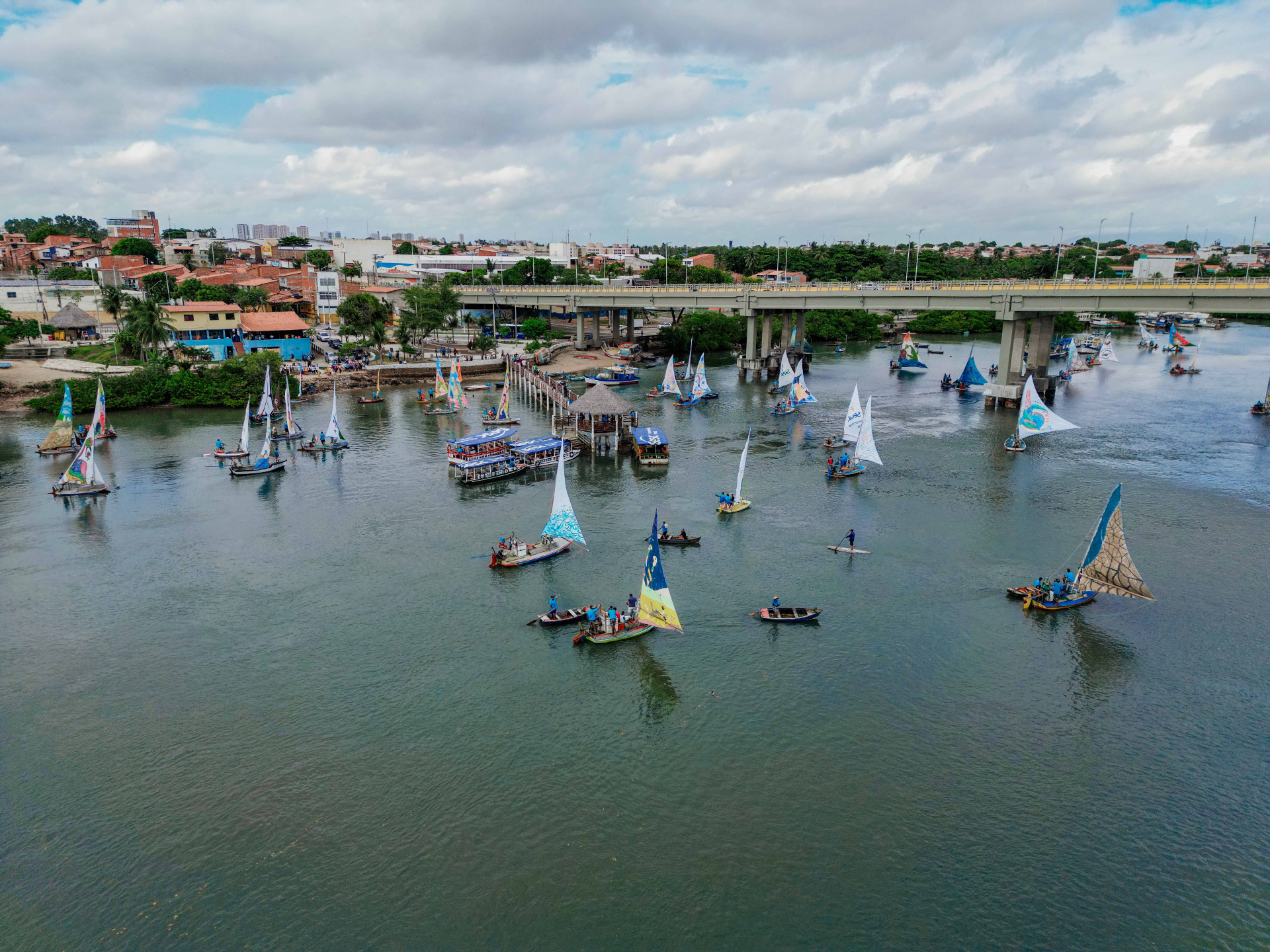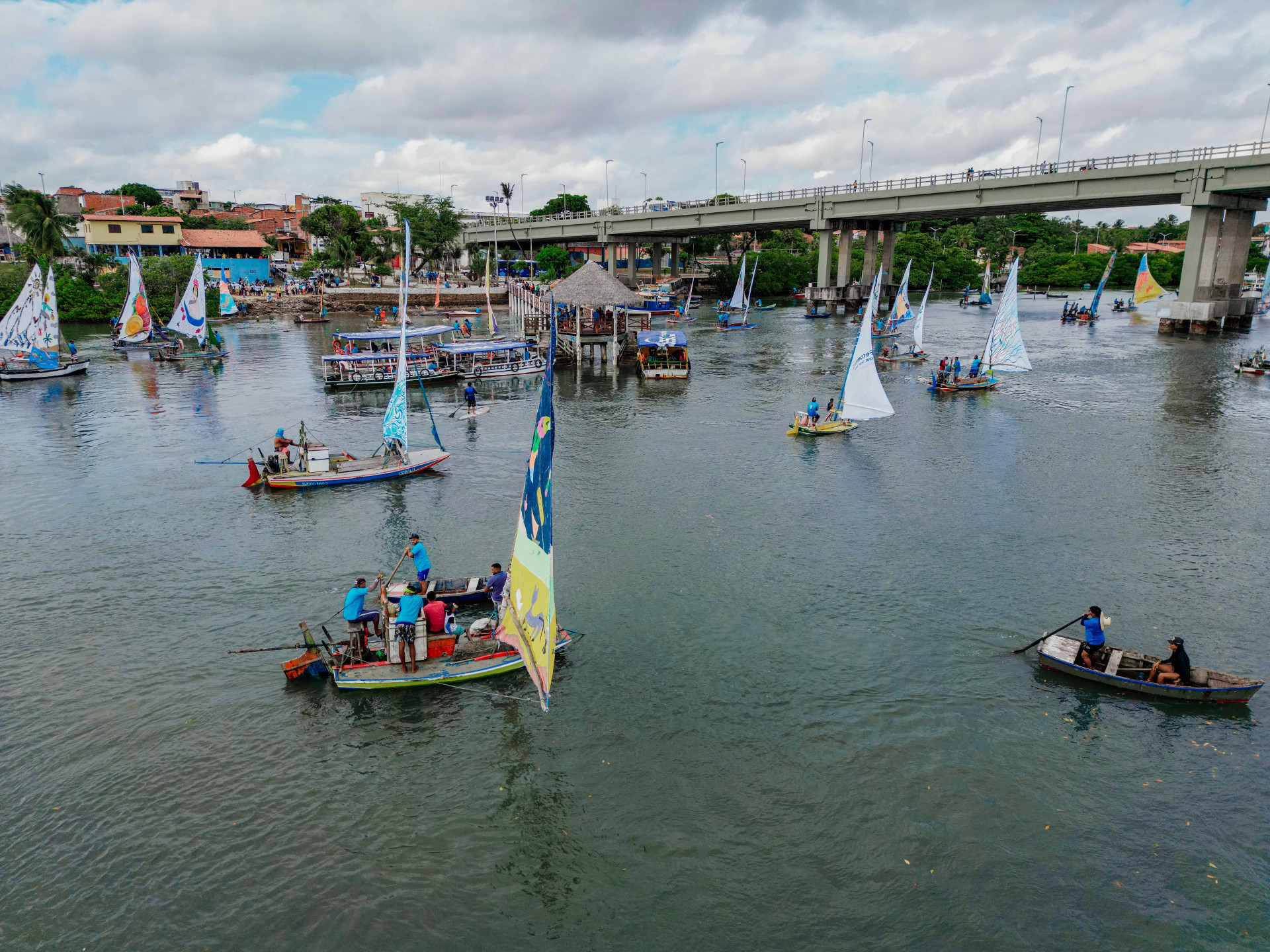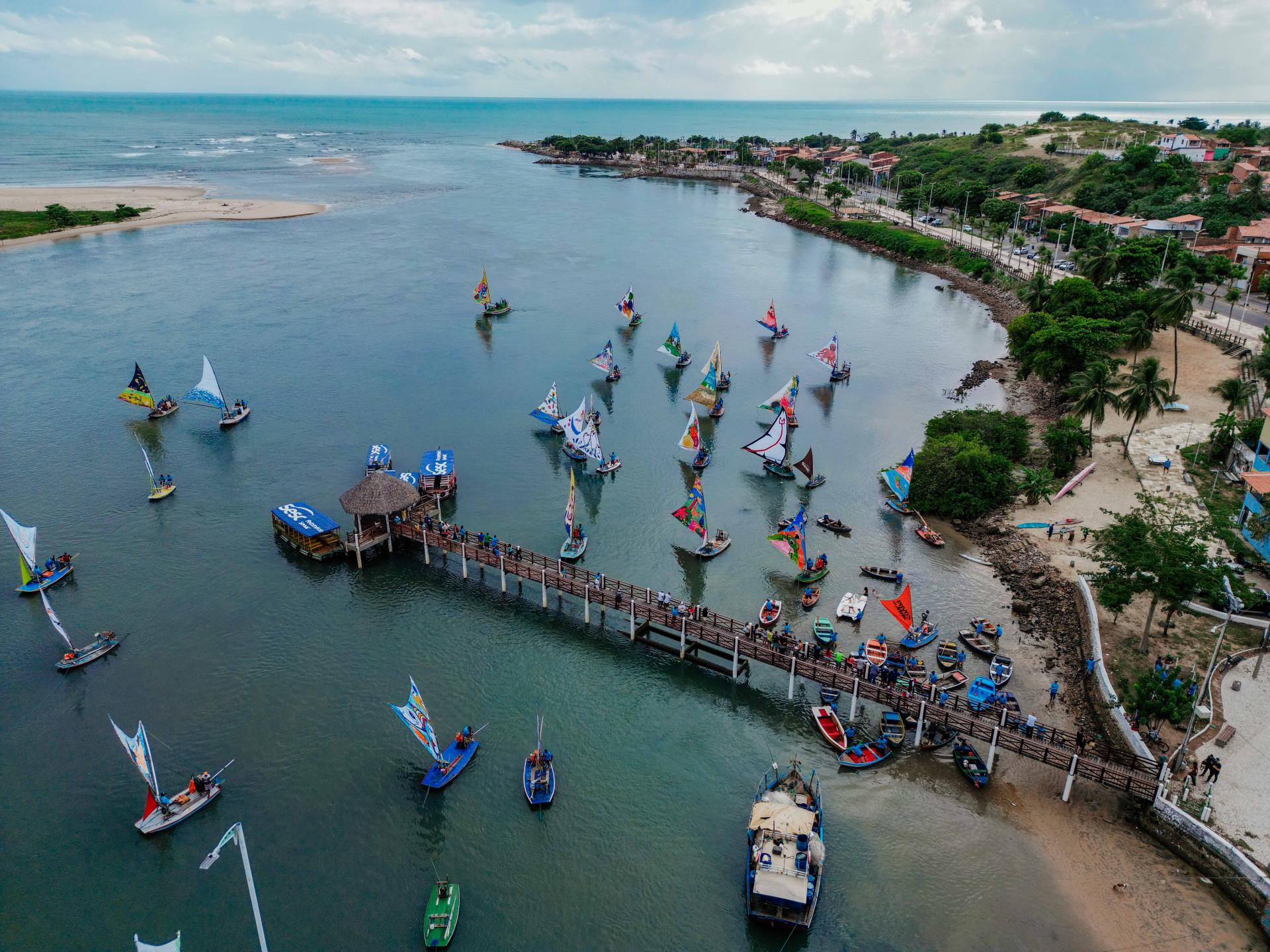 Mesmo sob um céu nublado, o desfile de jangadas atraiu o maior público desde 2020, ano de início do projeto. Confira fotos da chegada das embarcações na Barra do Ceará