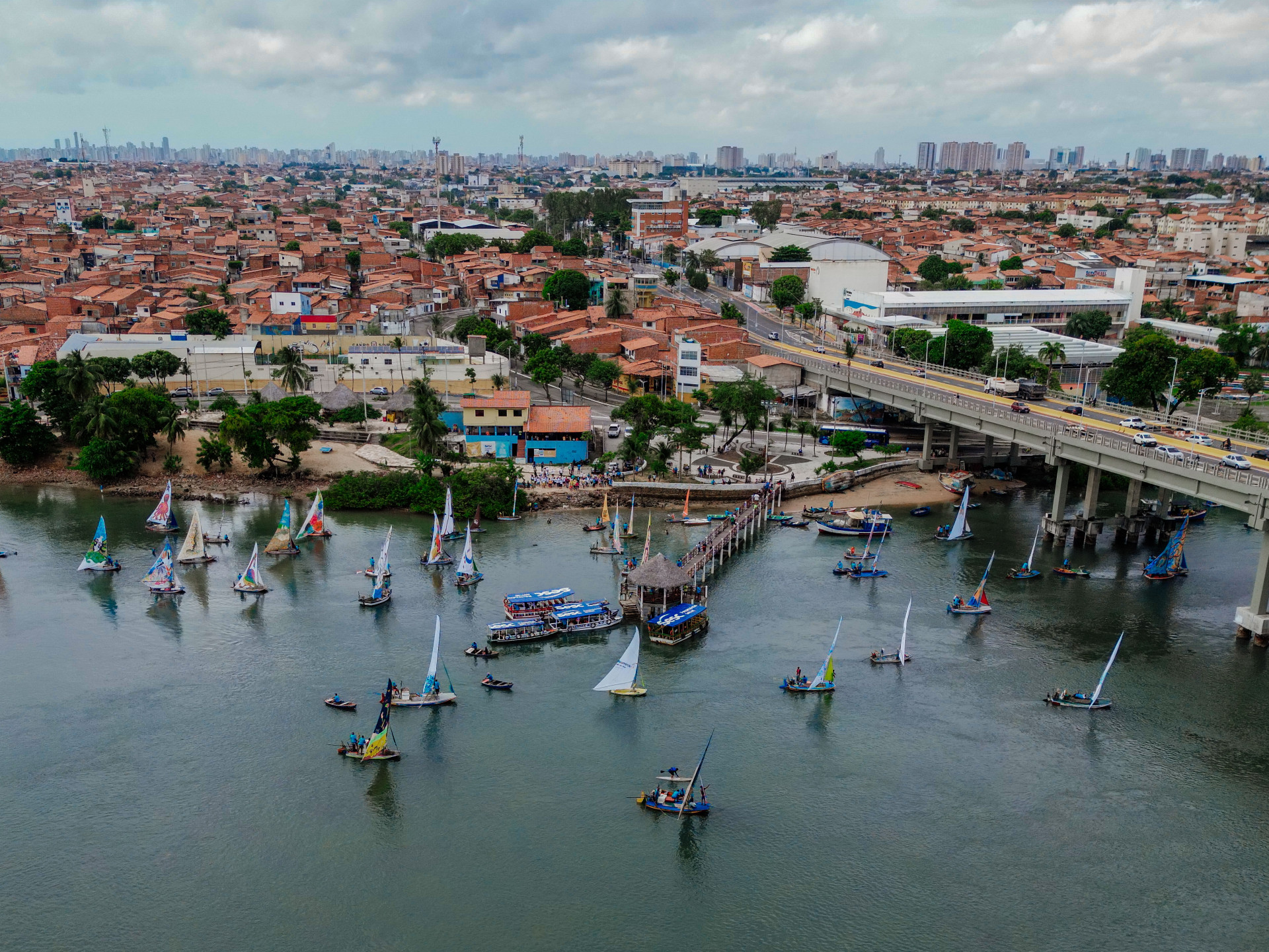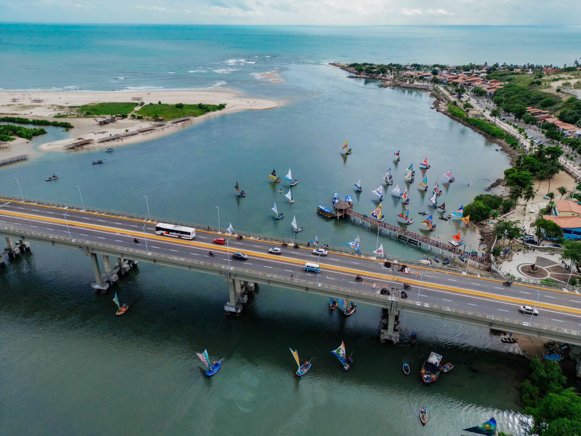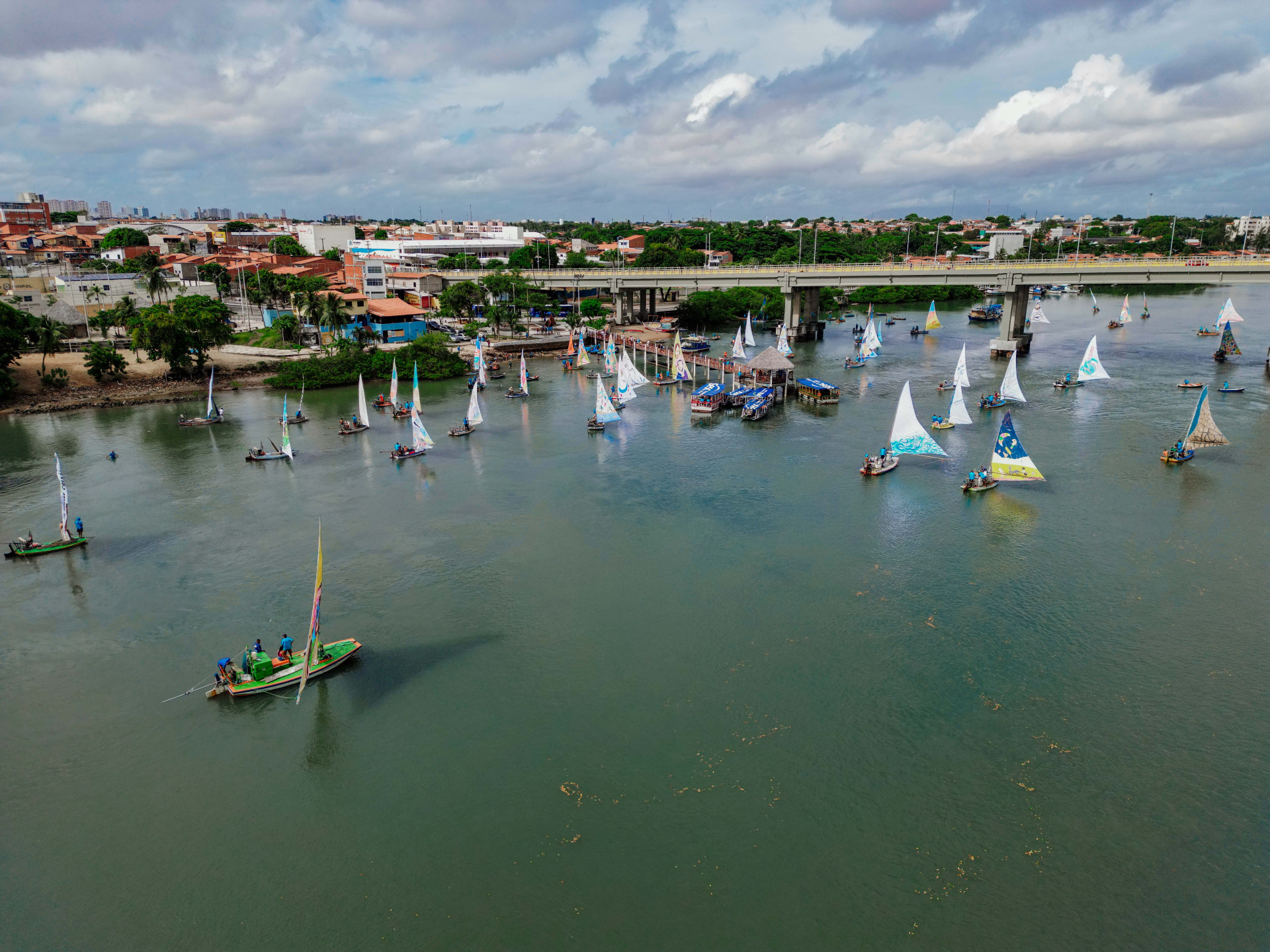 Mesmo sob um céu nublado, o desfile de jangadas atraiu o maior público desde 2020, ano de início do projeto. Confira fotos da chegada das embarcações na Barra do Ceará