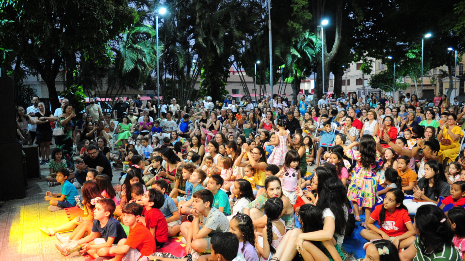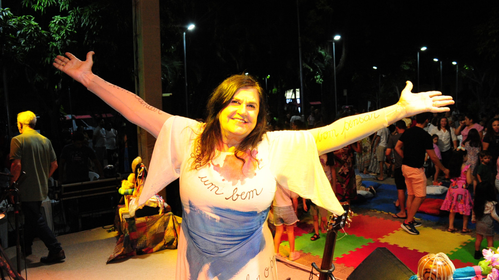 A Praça Alexandre Arraes, no Crato, reuniu, neste domingo, 25, um público diverso para o espetáculo “Canções, Histórias e Brincadeiras Musicais de Bia”, da escritora, cantora, compositora e atriz Bia Bedran. Evento foi uma das atividades que marcaram o encerramento da Mostra Sesc Cariri de Culturas, iniciada na última quinta-feira, 22.