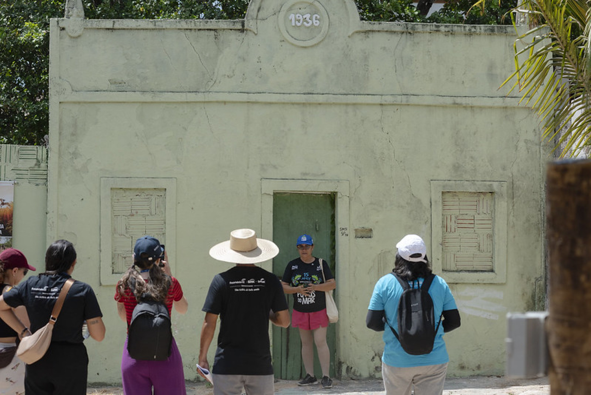 No percurso, histórias das fachadas, que refletiam o poder aquisitivo das famílias - se fossem de pedra, tinham renda maior, porque eram de origem do serrote; do ofício dos moradores, que iam de parteiras, a professoras e poetas; e o sentimento de orgulho e pertencimento. “Minha avó era uma costureira de mão cheia, fina, de terno. Era a única do Serrote. Não sei como ela aprendeu”, conta, diante de um hotel, mas que antes era terreno da sua avó.