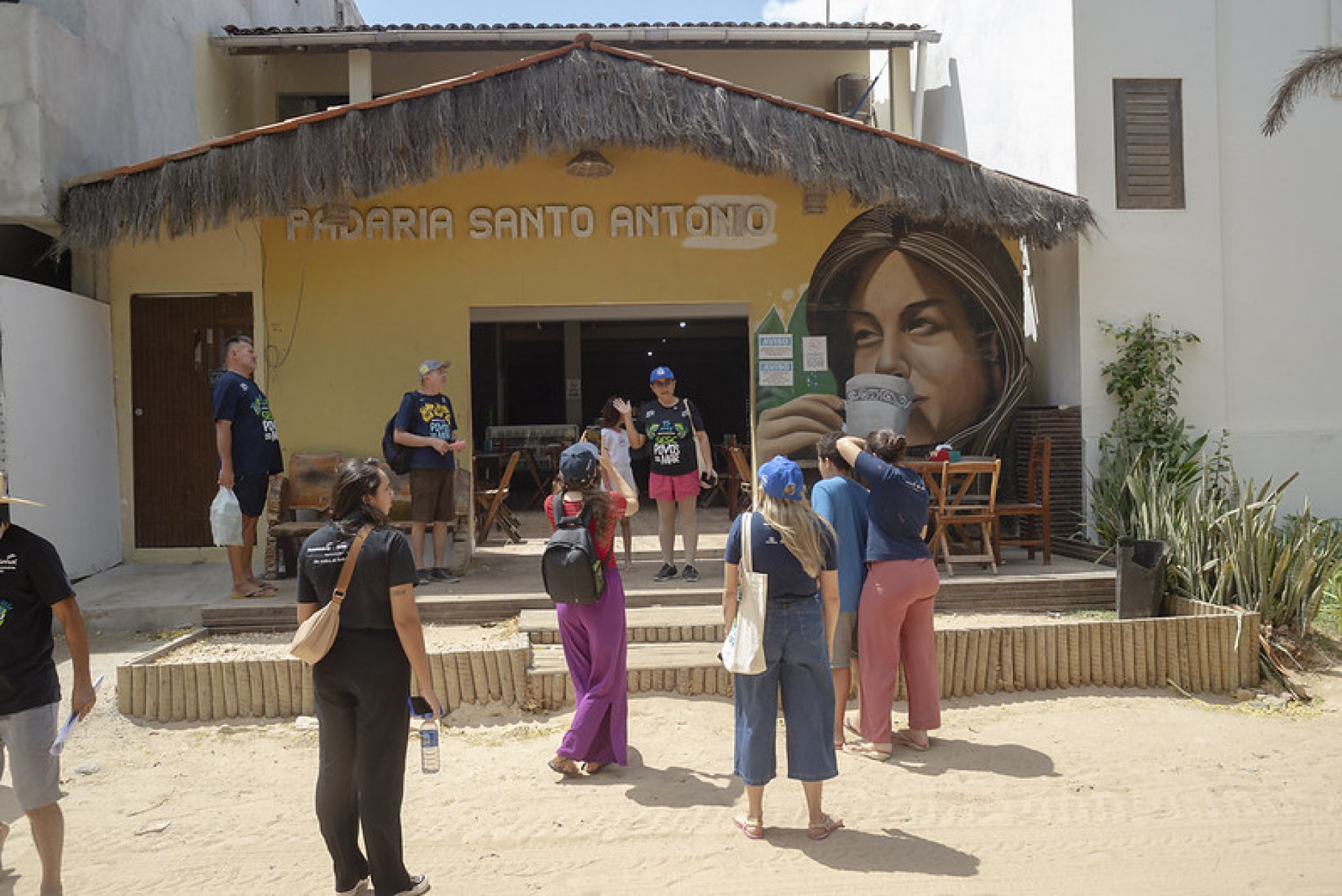 Você já parou para pensar quem estava ali em Jericoacoara há 100 anos? A Lu Vasconcelos, presidente do conselho comunitário de Jeri, sabe muito bem. É que ela e seus familiares são “nativos” de Jeri. E foi na companhia dela que O POVO começou o terceiro dia do Encontro Sesc Povos do Mar circuito Jeri. Pela manhã, o percurso pela vila contou com um mix de sentimentos e história. O tour começa na casa onde a presidente cresceu com os irmãos, muro com muro com a primeira padaria da vila, a Santo Antônio, que iniciava as suas atividades às 2 horas da manhã, vendendo, a princípio, rosca de goma, e, em seguida, pães com a receita dada por um mineiro. Hoje, a padaria segue sob outra administração e com diferentes receitas.