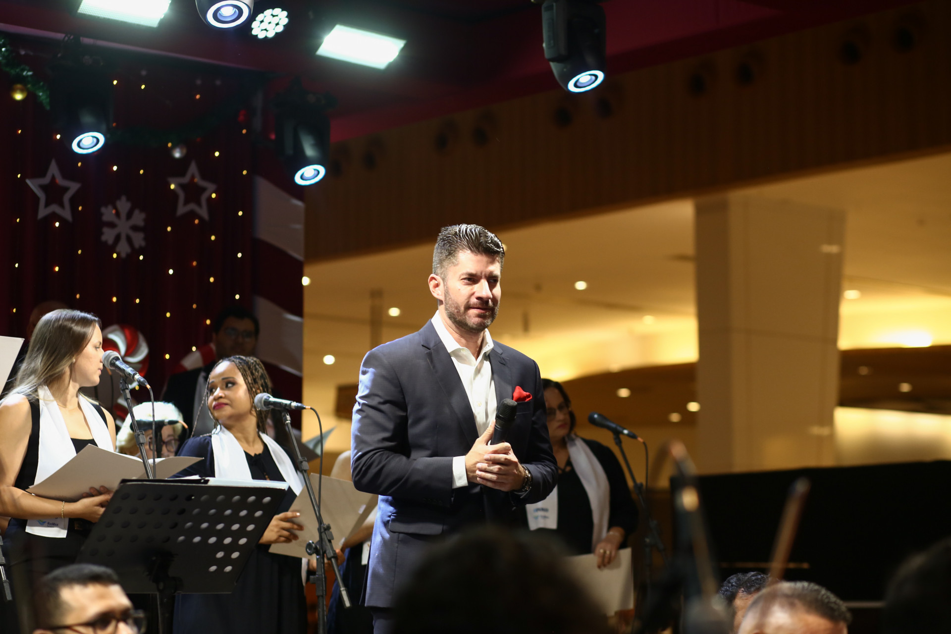 “Essa lotação do local, no shopping, é uma verdadeira bênção para nós que pensamos nesse evento. Não podemos recuar. O mundo pede paz e aqui durante uma hora e meia nós cantamos a paz, o amor e o verdadeiro natal, que é a união de todas as pessoas aqui de mãos dadas cantando”, celebra a jornalista Lêda Maria.