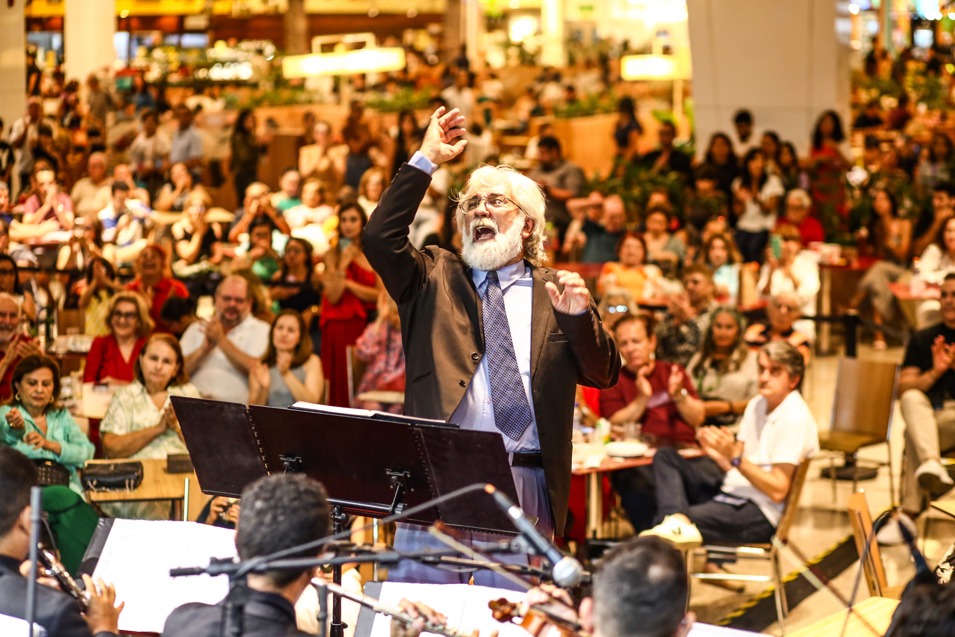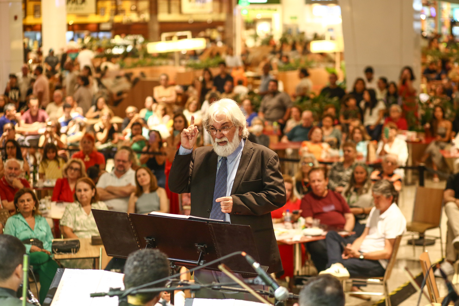 “Aqui é um shopping, é uma praça de alimentação, a gente quer tentar fazer com que todas as músicas que nós vamos tocar atinjam, de alguma forma, as pessoas que estão aqui. Então tem música regional, tem música tradicional de Natal, tem música meio pop, mas todas que falam de paz, de Natal”, explica o Maestro Poty Fontenelle.