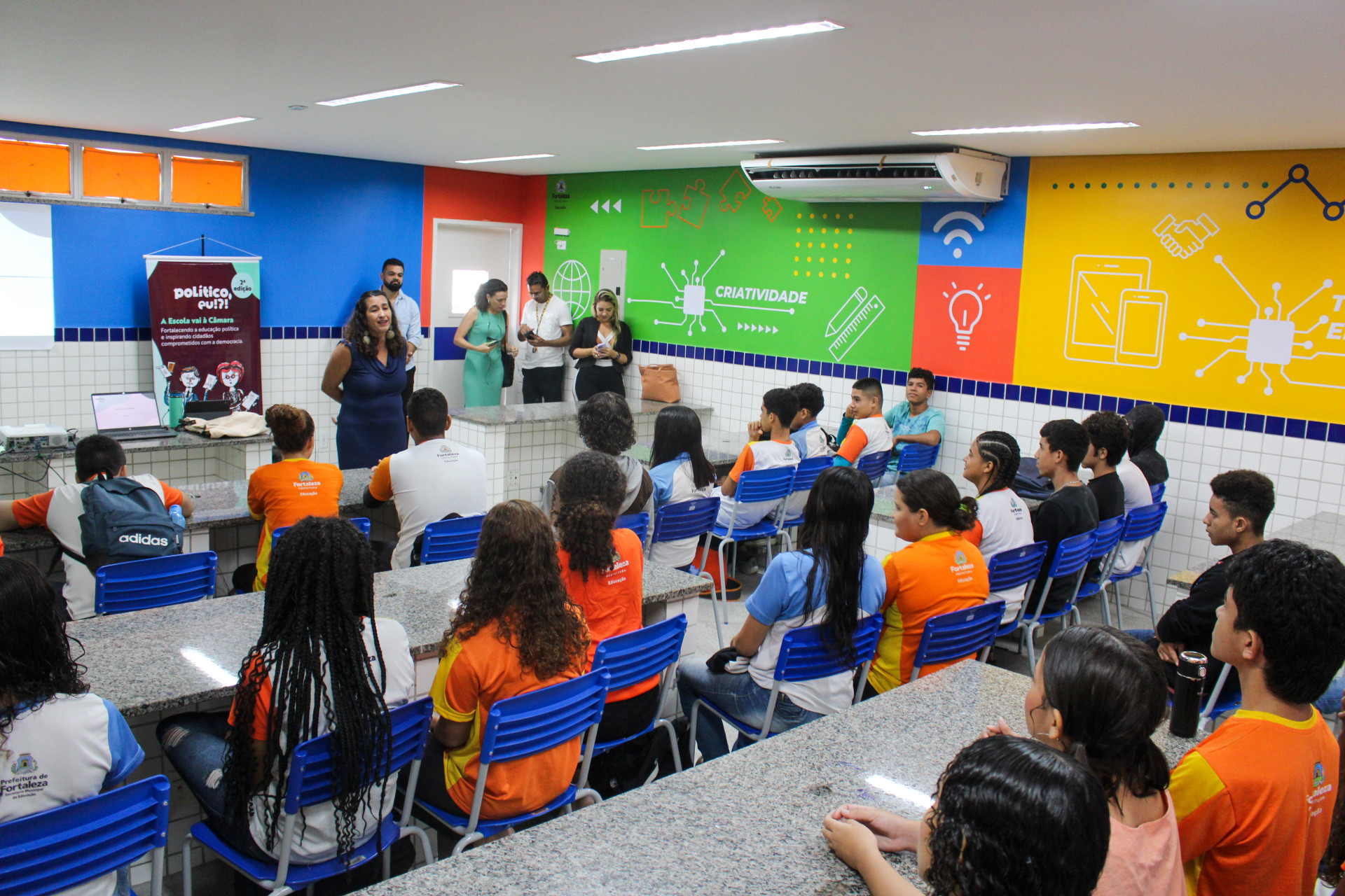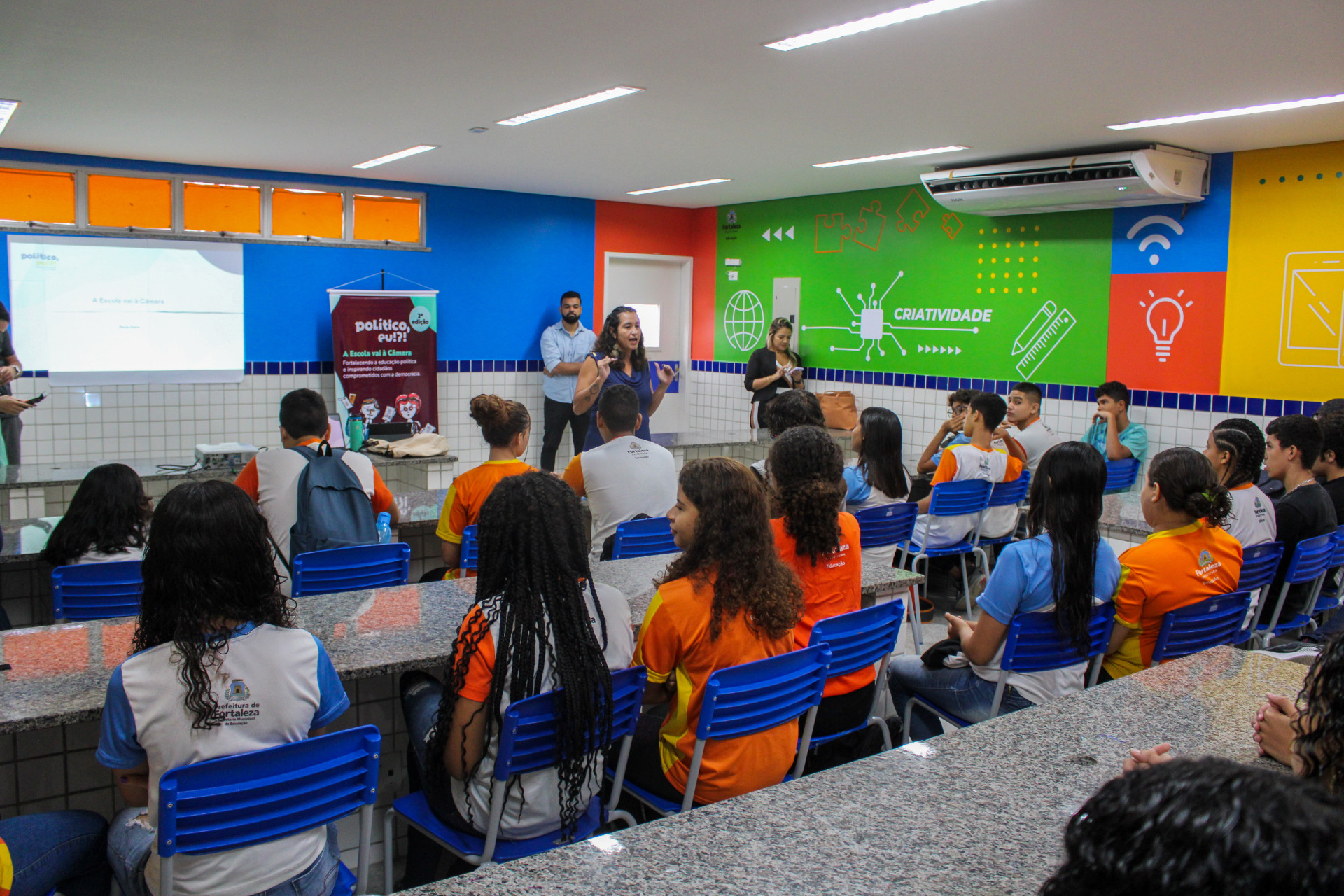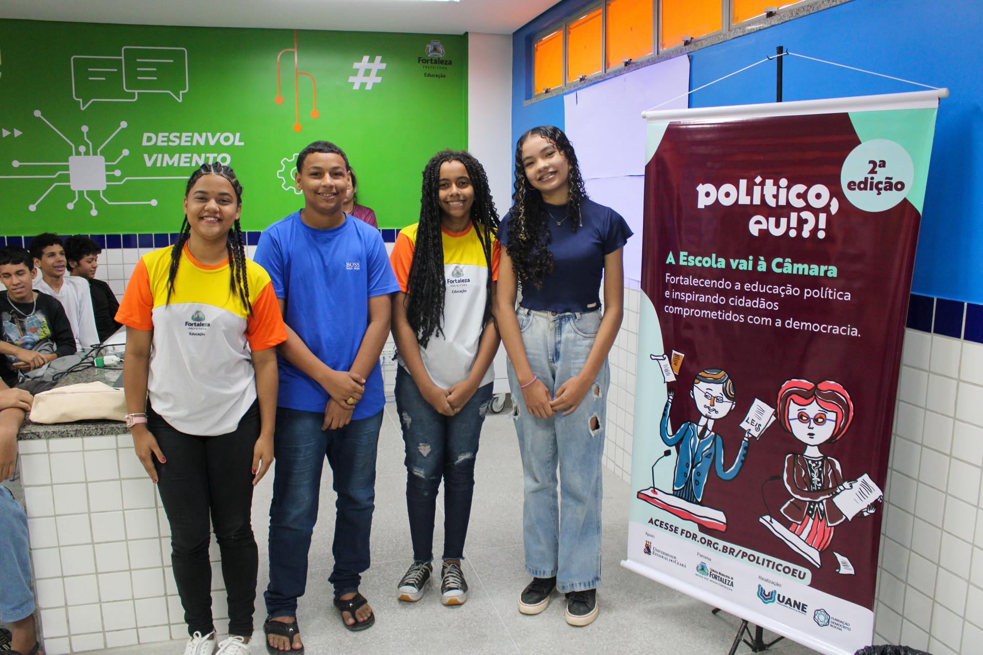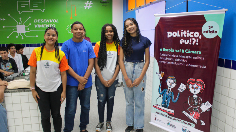 O programa Escola vai à Câmara Municipal de Fortaleza esteve inserido no projeto Político, eu?!?, realização da parceria entre a Fundação Demócrito Rocha (FDR) e a Câmara Municipal de Fortaleza (CMF). Considerando o conteúdo escolar, o projeto se aproximou da escola com o objetivo de contribuir para formação cidadã.