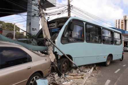 O acidente envolveu três veículos de deixou uma pessoa levemente ferida, segundo a AMCUm acidente envolvendo três veículos, na manhã desta quinta-feira, 23, fez um poste cair e deixou uma pessoa levemente ferida, na avenida Aguanambi, em Fortaleza. Um ônibus colidiu com o poste elétrico e outros dois carros foram atingidos.