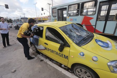 O grupo com jovens não identificados ainda foi até a avenida Domingos Olímpio e depredou um carro da TV Cidade, que estava estacionado em frente à Associação de Cabos e Soldados Militares do Estado do Ceará. Quando foram afastados pelos policiais do local, que chegaram a atirar pra cima, o grupo voltou para as paradas do shopping Benfica.