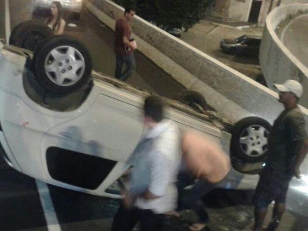 Um veículo capotou no viaduto da avenida Pontes Vieira, no bairro de Fátima, por volta das 22h15 desta quinta-feira, 22.