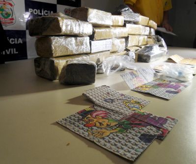 Material foi apreendido na casa de um acusado de tráfico de drogas. O homem portava maconha e no local ainda foram encontrados comprimidos de esctasy e LSD
