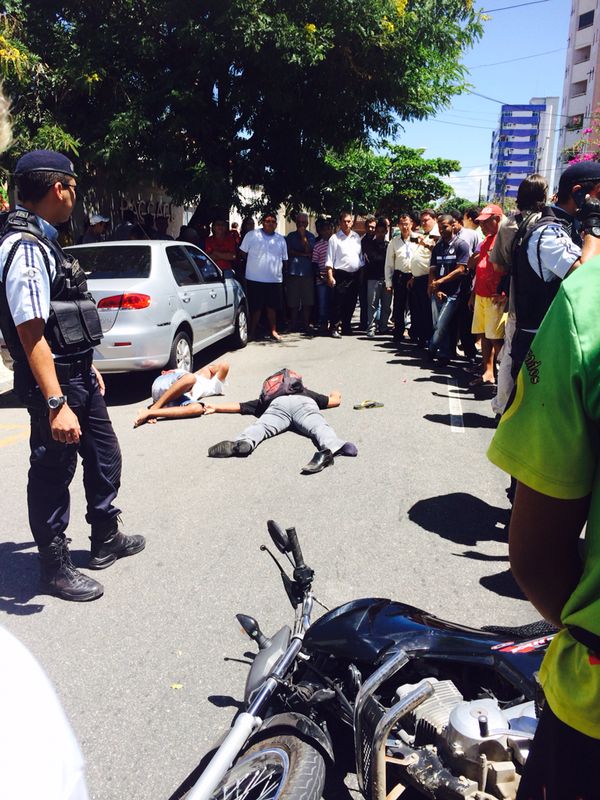 De acordo com a Polícia Militar, os homens roubaram o dinheiro e fugiram de motocicleta pela rua Osvaldo Cruz, quando foram interceptados e baleados por um PM. Segundo o tenente-coronel Sávio Carvalho, comandante da Área Integrada de Segurança (AIS) 3, um dos assaltantes morreu no local. O outro foi atingido por um tiro no braço e não corre risco de morte.