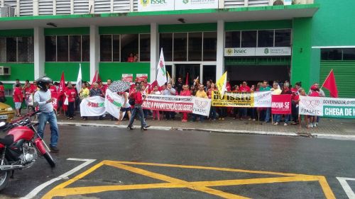 Servidores estaduais protestam na sede do Issec