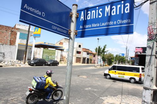 A avenida B, que passou a ser chamada de avenida Alanis Maria Laurindo de Oliveira, recebe desde o último dia 3 de agosto placas com a nova nomenclatura, conforme a Secretaria Secretaria Municipal de Urbanismo e Meio Ambiente (Seuma). A homenagem da via no Conjunto Ceará lembra a menina de 5 anos que foi estuprada e assassinada em 2010 por Antônio Carlos dos Santos Xavier, o ''Casim''.