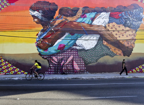 [SAIBAMAIS1]"Nesse caso, a arte está inserida no chão, está dentro da paisagem, e por isso seu impacto é bem maior. Aqui, o pedestre, o passante, o carro, estão quase dentro do nosso trabalho", explica Robézio.