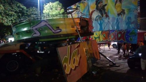 Um acidente com o brinquedo "Samba" de um parque de diversões no bairro Henrique Jorge deixou dois feridos, na noite desta quinta-feira, 4. O equipamento funcionava normalmente com sua lotação máxima, quando parte da lateral cedeu e várias pessoas caíram.