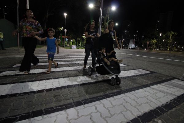 Outro destaque são as faixas de pedestre, equipadas com botoeiras, que facilitam o acesso de transeuntes a praça central e o trânsito entre as quatro praças laterais criadas.