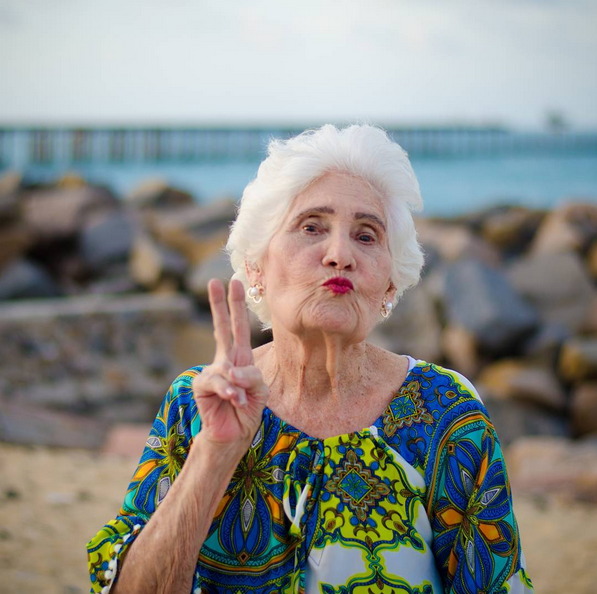Vovó faz ensaio fotográfico pelas ruas de Fortaleza para celebrar 90 anos
