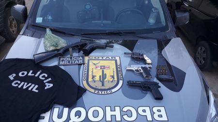 Quatro armas foram apreendidas, além de uma das camisas da Polícia usadas na ação criminosa
