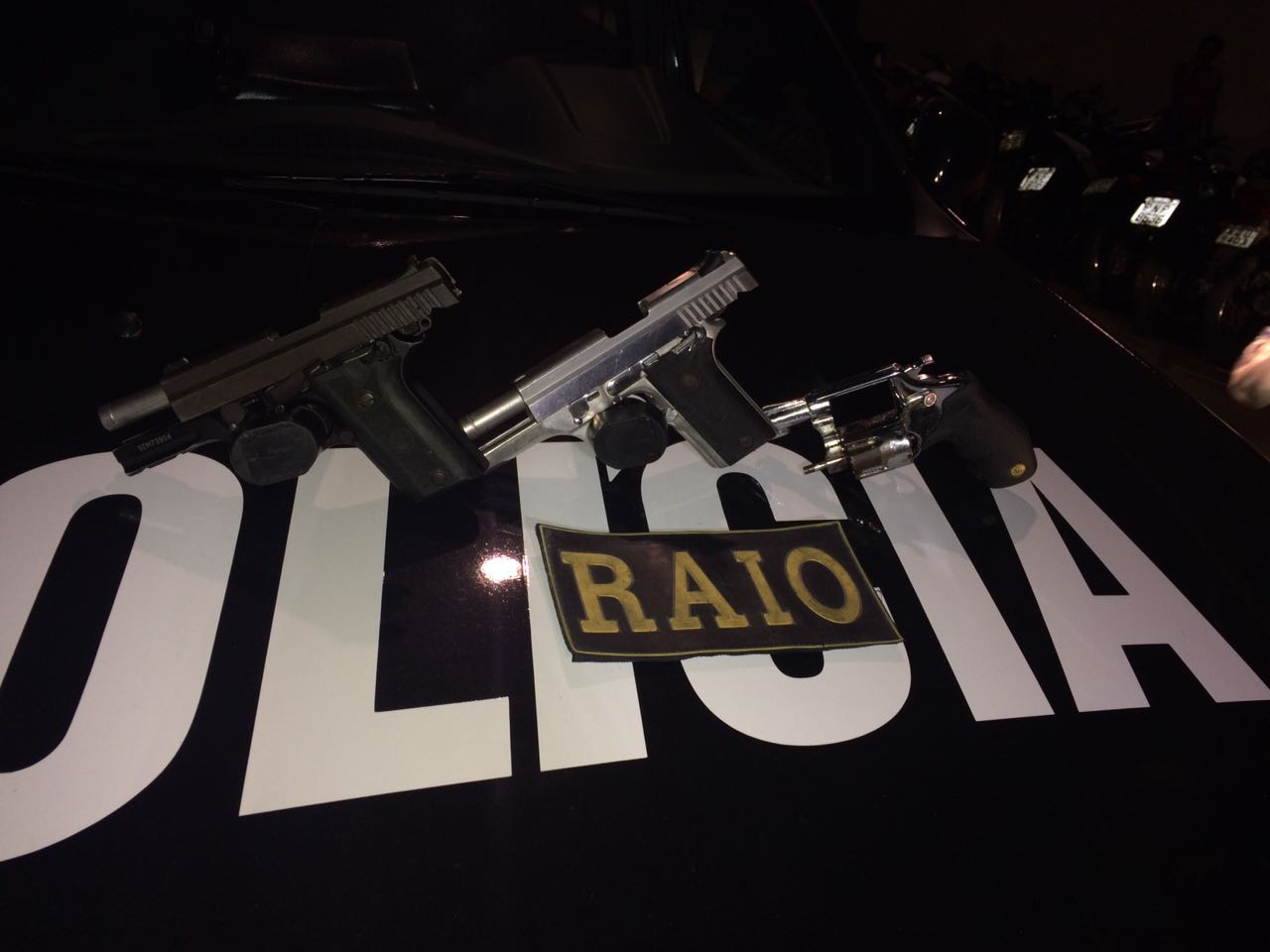 [FOTO1]Após uma perseguição a quatro homens em duas motocicletas ,que começou na Rua Graça Aranha, o Batalhão de Policiamento de Rondas e Ações Intensivas e Ostensivas (BPRaio) prendeu três homens, apreendeu duas pistolas e um revólver, por volta das 20 horas desta quinta-feira, 20, em Fortaleza.