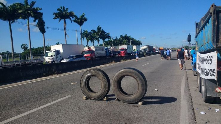 Caminhões começam a deixar ponto de bloqueio na BR-116 e greve perde força