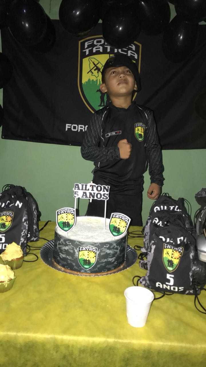 Menino de cinco anos ganha festa de aniversário com tema da Força Tática