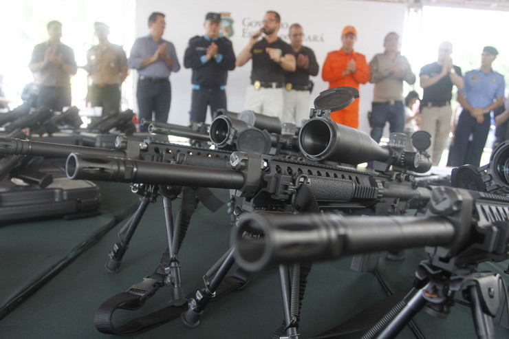 Foram entregues pistolas Sig Sauer de modelo P 320 calibre .40mm e 9x14mm; e fuzis radical RF 15 calibre 5.56x45mm e armilte AR 10 calibre 7.62x51mm.