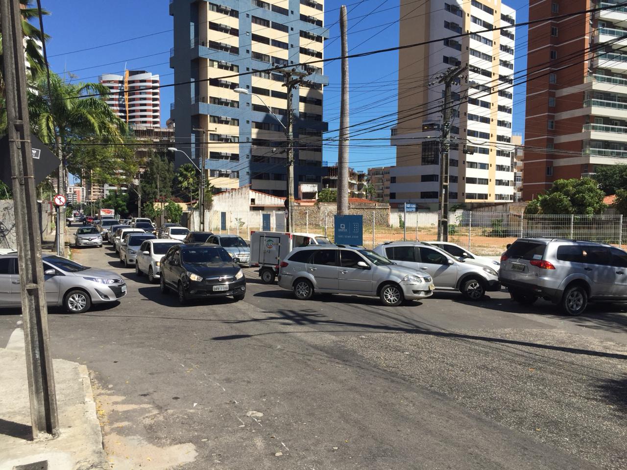Bloqueio em rua de acesso à avenida Dom Luís causa transtornos no trânsito do Papicu e Cocó