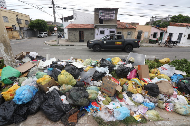 Com serviço de coleta prejudicado, lixo se acumula nas ruas de Fortaleza