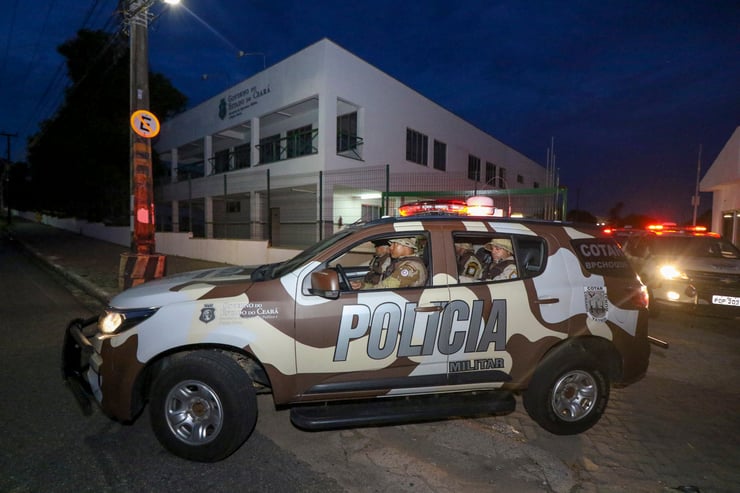 AssineOs policiais militares baianos que atuarão na segurança pública do Ceará durante esta onda de violência já estão nas ruas. Os agentes deixaram a Academia Estadual de Segurança Pública (Aesp-CE) por volta das 18 horas deste domingo, 6, em 27 viaturas. Em cada viatura estavam quatro policiais.