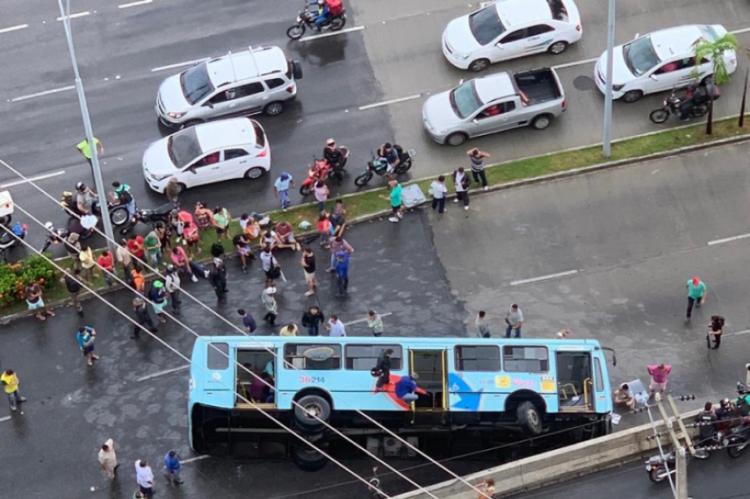 Ônibus tomba em avenida no Cocó; 29 pessoas ficam feridas