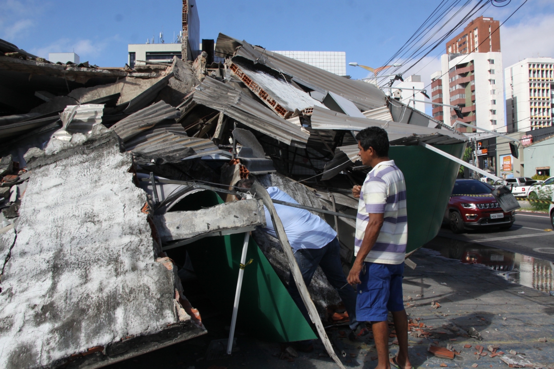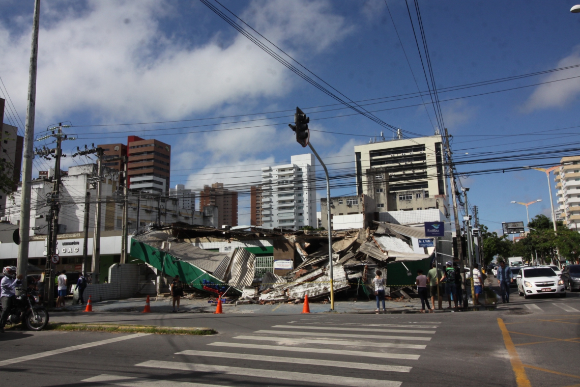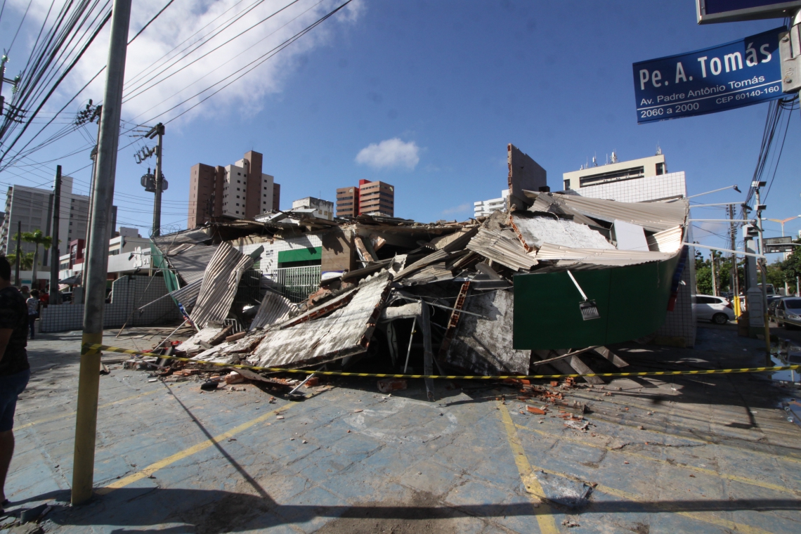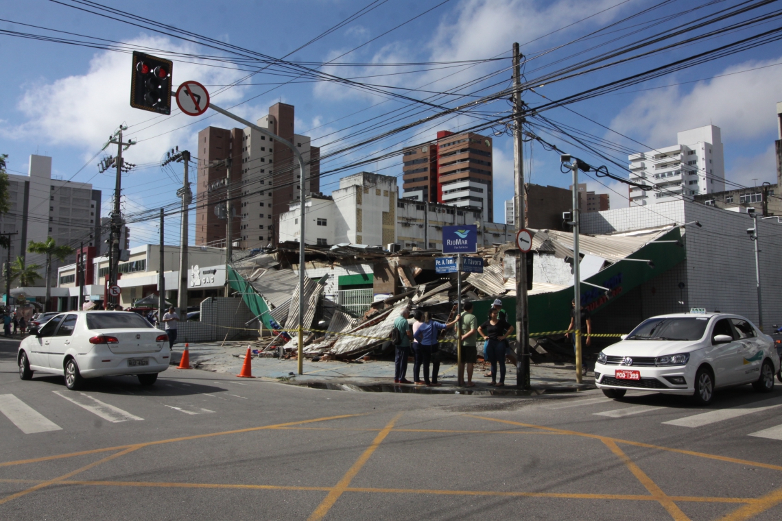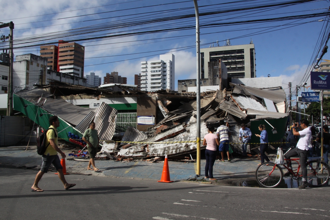 Motorista colide com farmácia e estrutura desaba na Aldeota