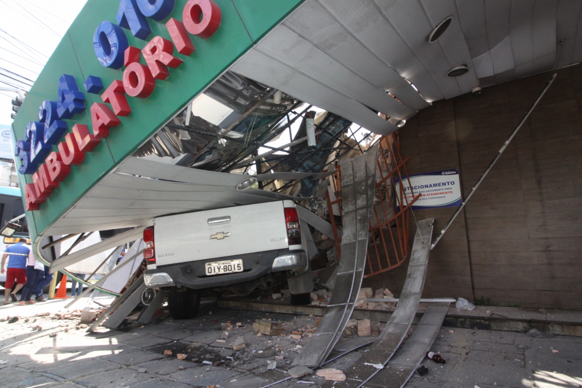 Representantes do estabelecimento comercial também estiveram na unidade policial. A Perícia Forense fez o trabalho de análise do acidente. Após os entulhos serem retirados, outra perícia deve ser feita internamente.