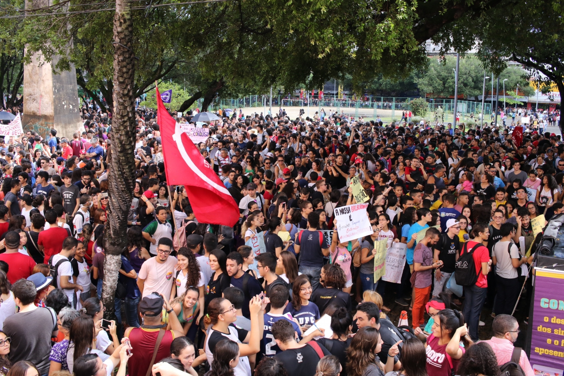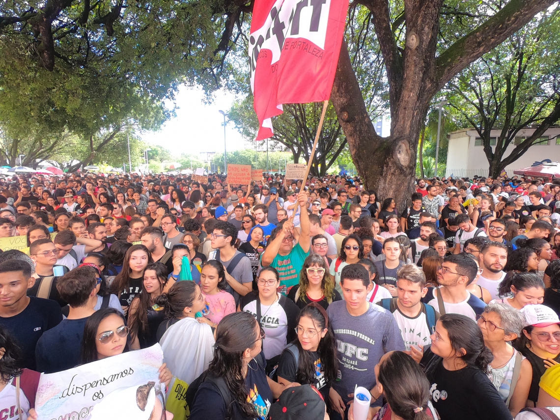 “Fortaleza paralisou pela educação, não vamos aceitar esse bloqueio. A educação, todas as universidades públicas e particulares... Por isso o ato está lindo, está unido. A UNE não vai aceitar retrocesso”, disse a estudante Quézia Gomes, vice-presidente da entidade estudantil. Segundo ela, a entidade também estará nas ruas no próximo dia 14 de junho, para quando é convocada a greve geral no País.