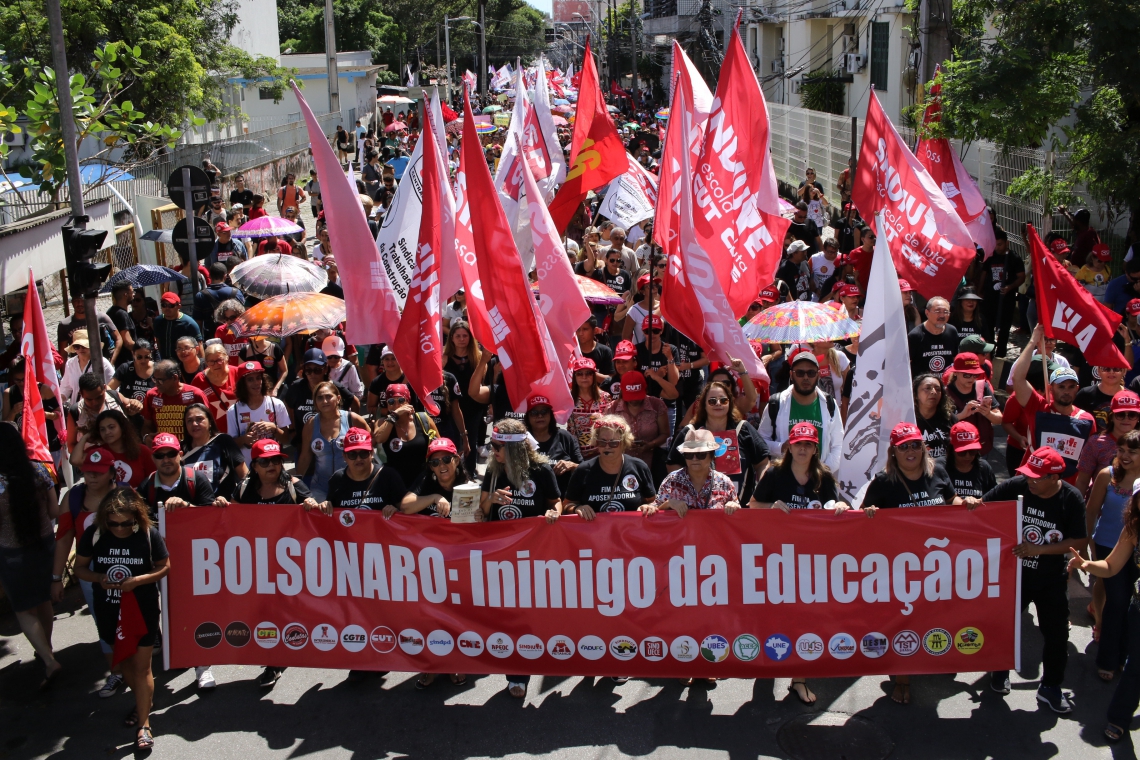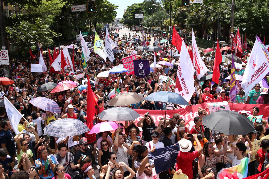 Ato contra bloqueios na educação termina em Fortaleza com convocação de greve geral