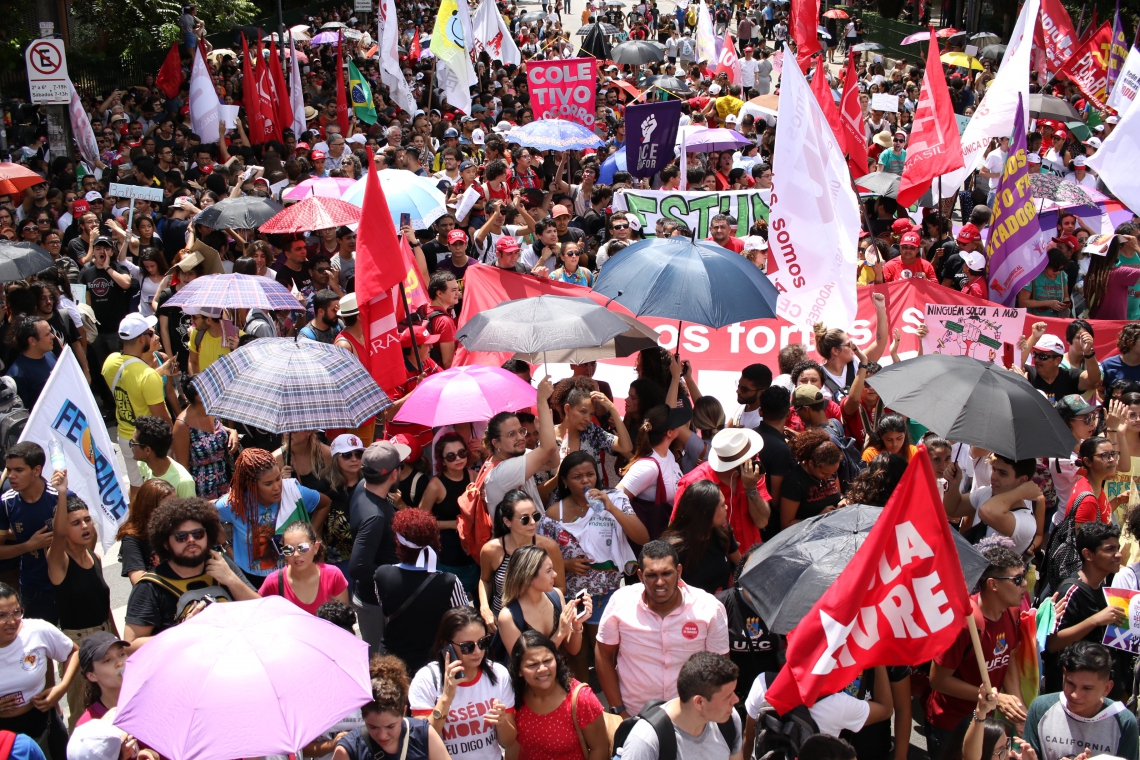 Após reunirem milhares de pessoas em ato nesta quarta-feira, 15, representantes estudantis, sindicalistas e diretores de entidades sociais convocaram os manifestantes para uma greve geral, marcada para o próximo dia 14 de junho.