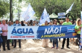 Jadson Sarto, presidente do Sindiagua, conta que o ato ocorreu, principalmente, para mostrar à sociedade os prejuízos caso a medida provisória seja aprovada. Segundo ele, essa aprovação pode acabar com o subsídio cruzado. “O subsídio cruzado é tirar de onde tem maiores recursos e colocar onde não tem. Com a privatização, isso vai acabar. Ou seja, as empresas privadas vão ficar com o “filé” da receita do saneamento no País e vão deixar para o Estado e a União, lugares que não têm condições de se manterem sozinhos”, explica.
