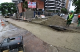 "A obra foi concluída e faltava apenas o asfalto, que estava previsto para as 22 horas da noite desta terça. Mas a chuva começou antes e suspendemos o asfaltamento. A água levou a areia que já estava compactada. Por ser uma avenida de tráfego intenso, o recapeamento é feito à noite", explica Manuela.