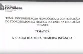 O documento divulgado pela jornalista é intitulado "Documentação pedagógica: a contribuição do coordenador na prática docente na educação infantil. Temática: A sexualidade na primeira infância", em papel aparentemente timbrado da Prefeitura de Fortaleza.